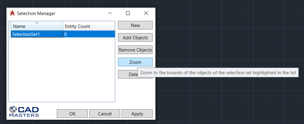 Selection Manager is an Autodesk® AutoCAD® add-in application that makes it easy to save and restore objects that you have selected in your drawing. Selection manager can be used to quickly save and restore the selection set. Selection sets are saved in the drawing and can be used by anyone with the Selection Manager add-in application.