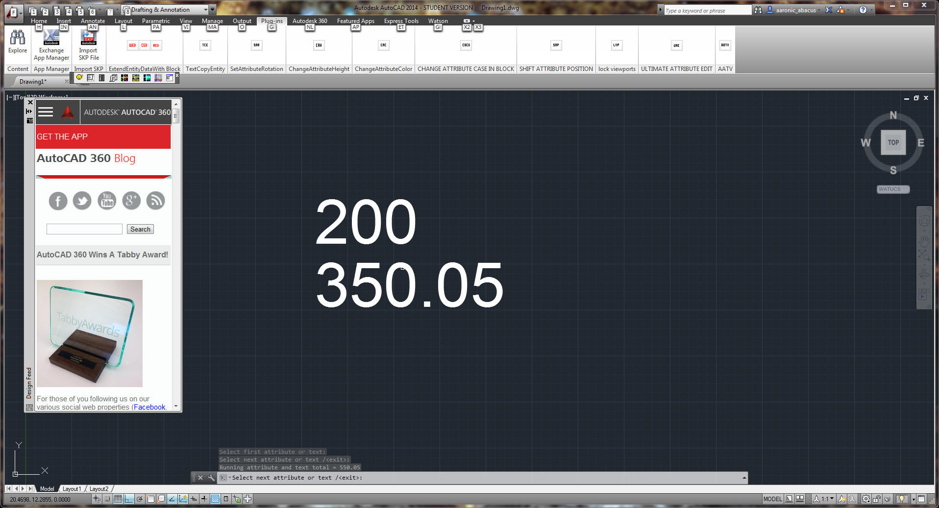 This routine adds (SUM) the numerical values of attributes, text, and dimensions, then places a text line with the result.