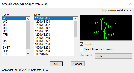 Steel3D-AUS Structural Steel Shapes created as a 3D solid can be placed as a column or beams by selecting multiple lines in the 3D model space. Shapes are created from the dimensional data in the Australian Steel Database.