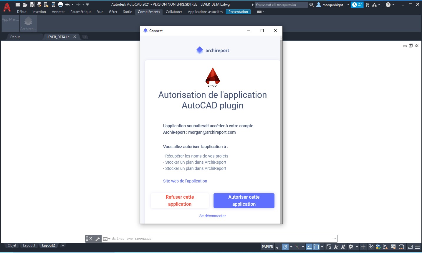 Once you’ve securely connected your Archireport account to AutoCAD, you can use the Archireport Transfer plugin for all your projects by following these two steps: