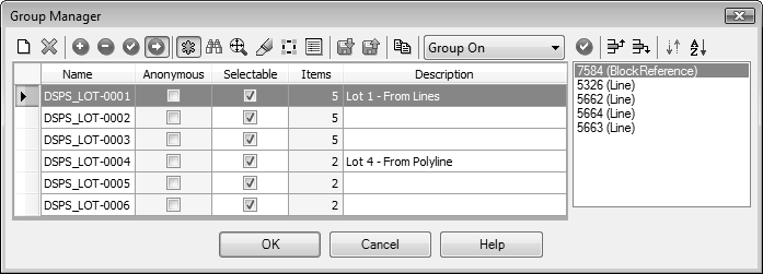 Provides all the functionality including built-in Autodesk® AutoCAD® command(s) along with additional group functionality. From the app interface standpoint, the dialog shows all group data in a spreadsheet format for easy review and editing.