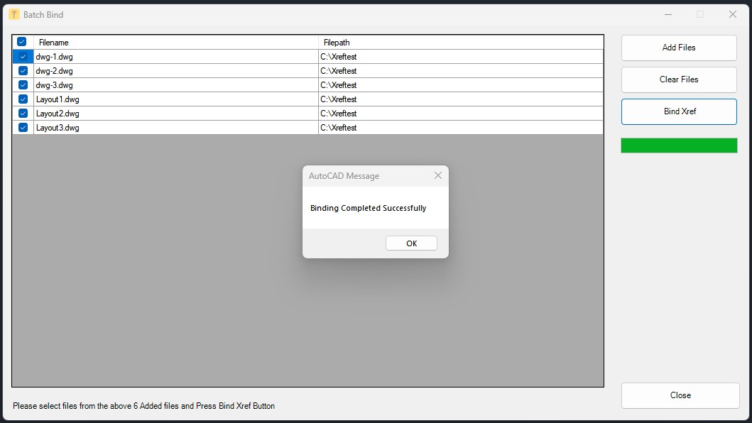 The second tool will bind multiple files and save them in the same location with the Acad- prefix.