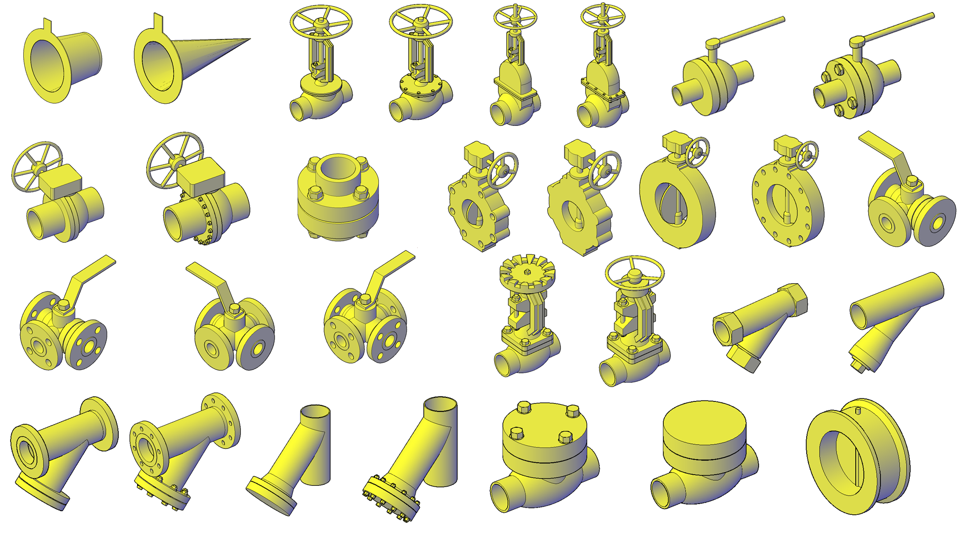 - All Valves are parametric Python parts so you can adapt to your standard if needed.