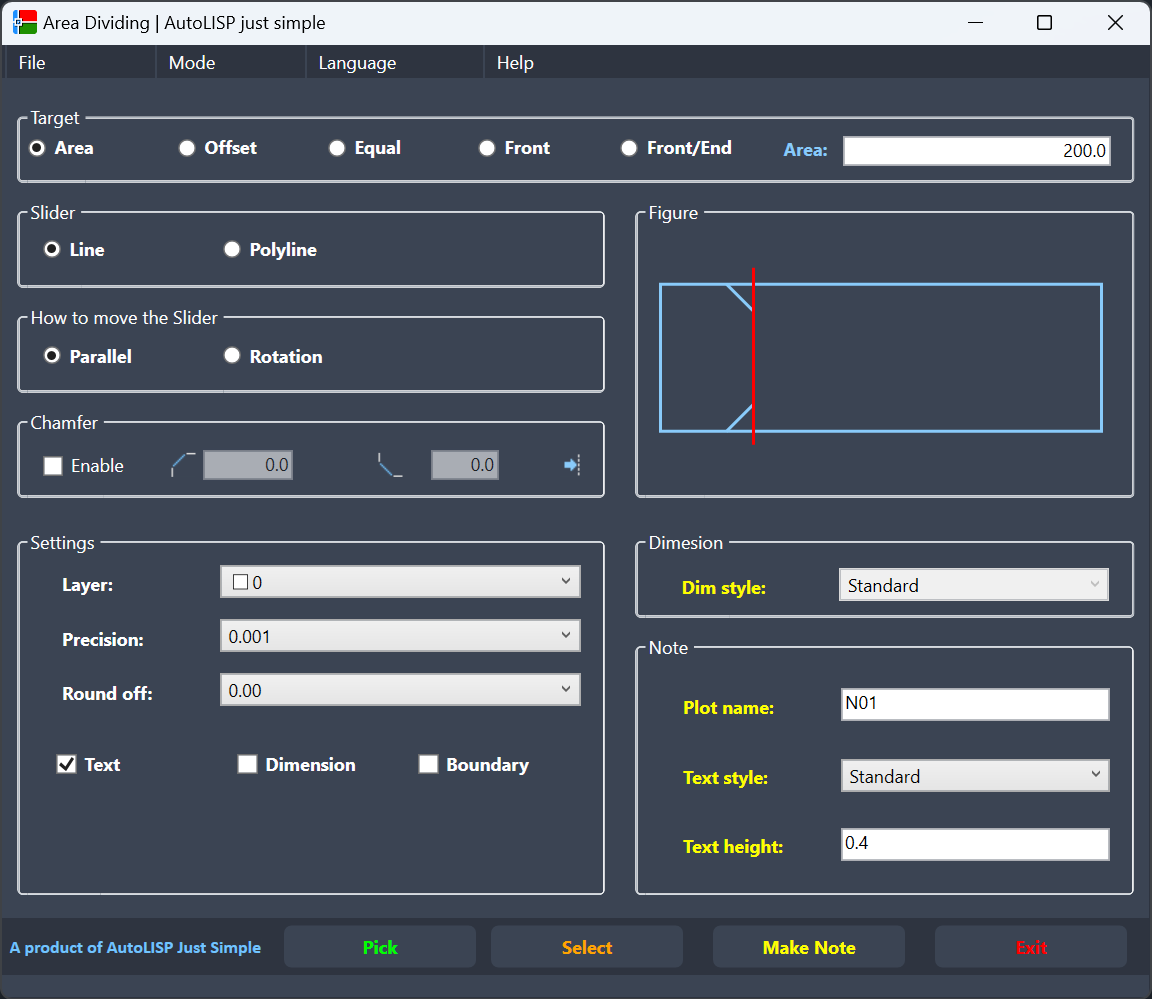 With the one command DVB, you can split an area by more than 10 different methods: