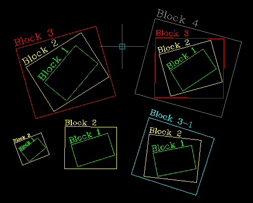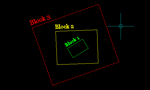 The program allows the user to convert a nested block into a primary block inserted at the same position for each reference of the nested block (i.e. extracting the nested block from its parent), retaining the same scale, rotation, orientation and all other properties possessed by the original nested block.