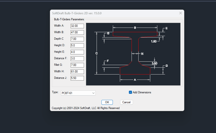Stop wasting time manually creating Bulb-T-Girders in your AutoCAD drawings. SoftDraft Bulb-T-Girders 2DS is the all-in-one solution for generating various Bulb-T-Girder profiles with precise dimensions, saving you countless hours on your next project.
