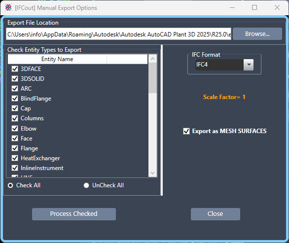 IFCout now supports a wide range of Autodesk products, including:- AutoCAD Plant 3D