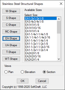 Stainless Steel Structural Shapes include W-Shapes, S-Shapes, Standard and Miscellaneous Channels, Equal and Unequal Leg Angles, T-Bars, and W-Tees. All shapes are created from a single polyline and made into an Autodesk® AutoCAD® block when inserted as section views. All shapes in the section view are parametrically drawn before placement and converted to a block for easy placement.