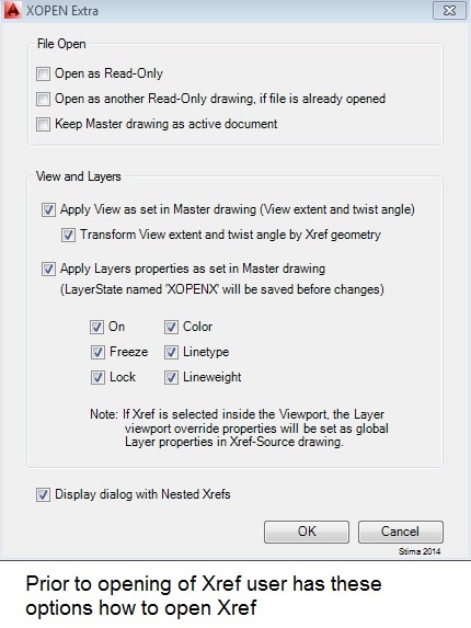 Open Xref with extra options: Similar as Autodesk® AutoCAD® command XOPEN but user has extra options how to open Xref.