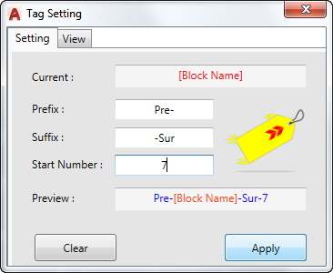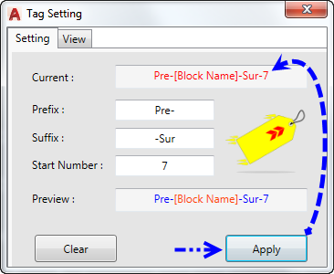 This application is a plugin that creates block name tags in Autodesk® AutoCAD® drawings. It helps the user make tags in a minute. To avoid some mistakes in tagging with the View manager.