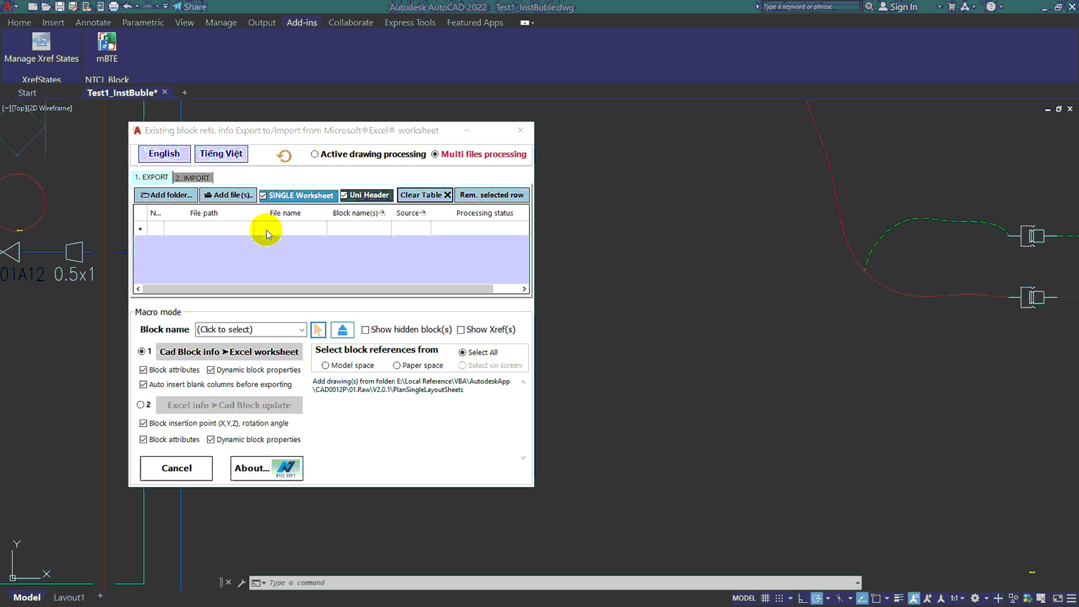 1. Enhanced Block info to/from the worksheet: 2-way (Read-Write) version of the classic Data Extraction command. Multi blocks per drawing\ multi drawings' info can be exported to just one worksheet, under a unique header row. Best for batch-filling Title block attributes with the help of AUTOFILL. Support Multiple Visibility States dynamic blocks, which may be useful for managing devices' status in a device circuit. Field attributes export/import are also supported.