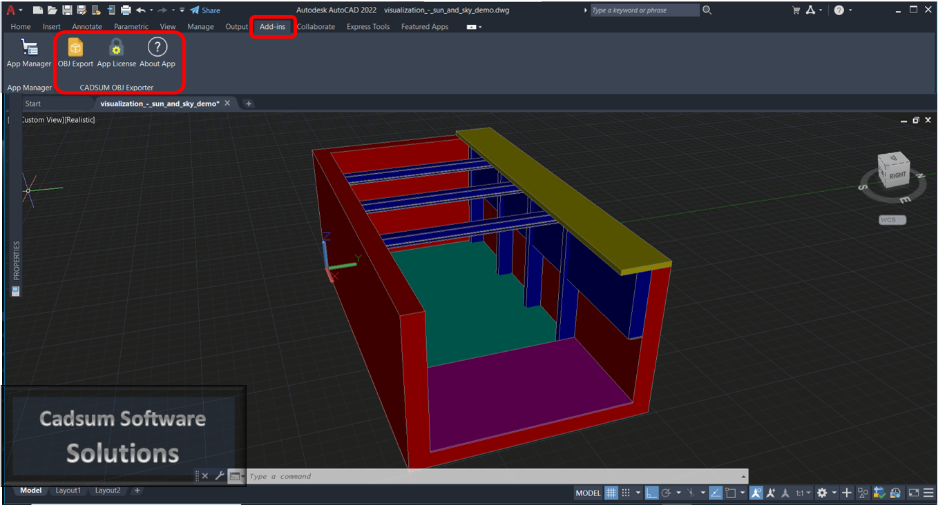 Cadsum OBJ Exporter for Autodesk® AutoCAD® - Paid