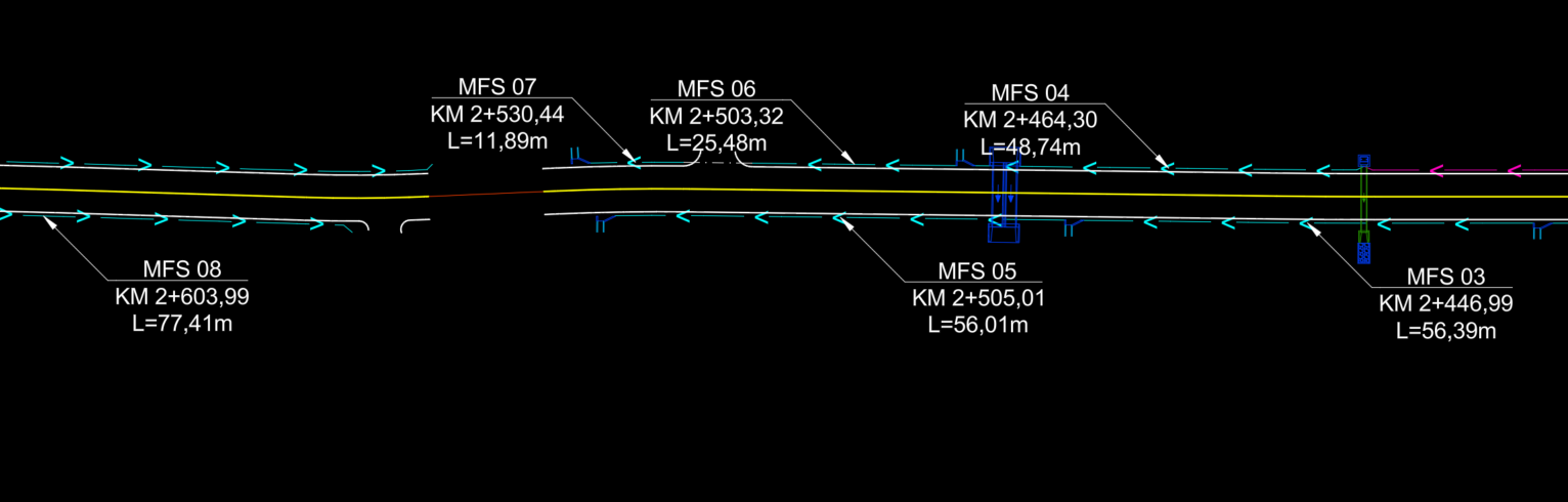 - Insert a multileader on selected polylines to show a defined numbered name, station text, and the length of the polyline.