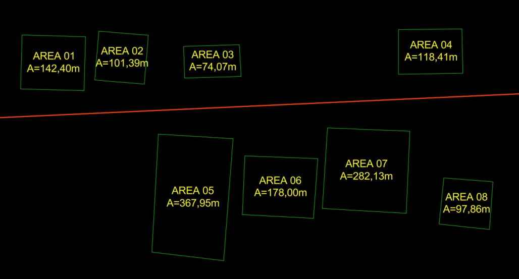 - Insert a text at the center of each selected polyline to show a numbered name and the object's area.