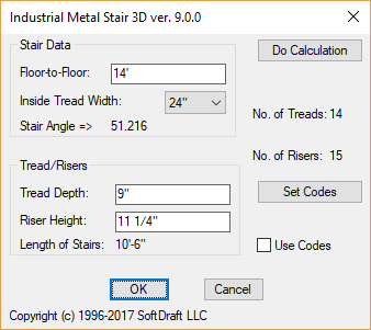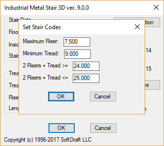 The calculations used by Steel Stairs 3D are based on the stair codes you set for maximum riser height and minimum tread width. This ensures that your stairs meet all relevant safety standards and regulations.