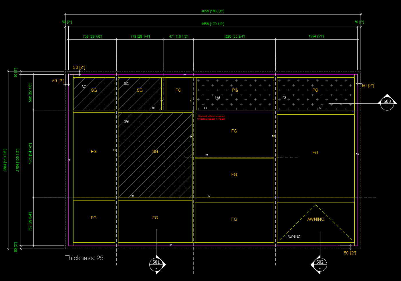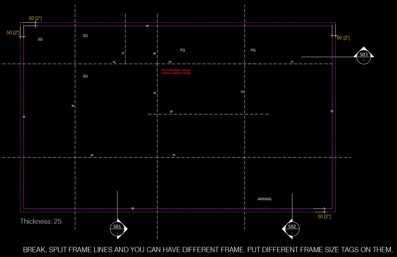 The result will be detailed Window Frame drawings, with sections, as demonstrated in the screenshots below.