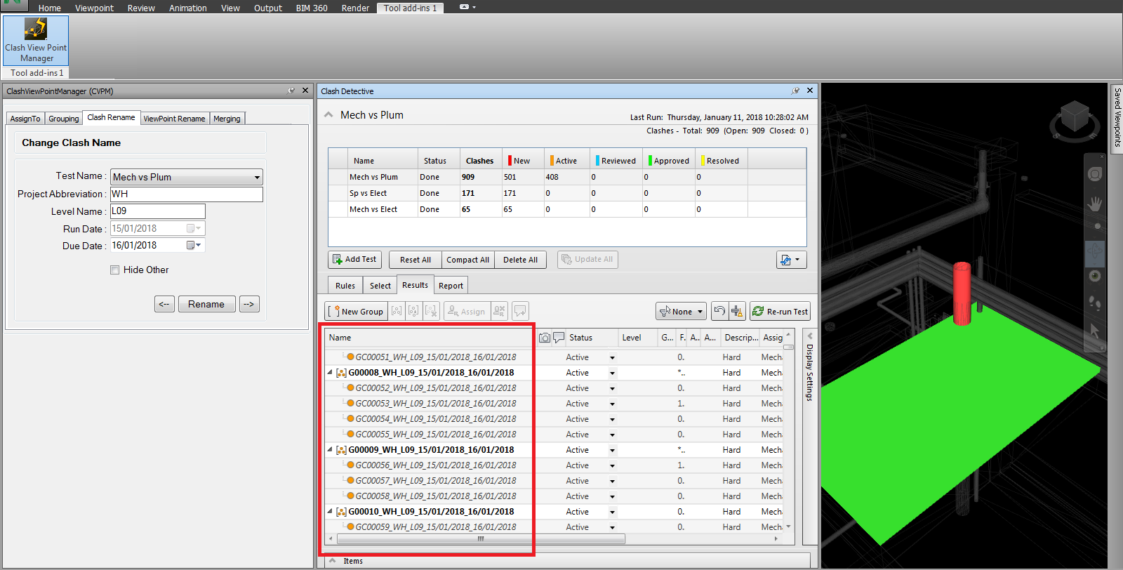 3) Rename Clash: Allows users to define names for the clashes provisioning better understanding of a clash report, hence the clash report becomes more meaningful & easy to understand. You just need to fill in a few fields like Project Name, Level Name and it will Rename the clashes for you.