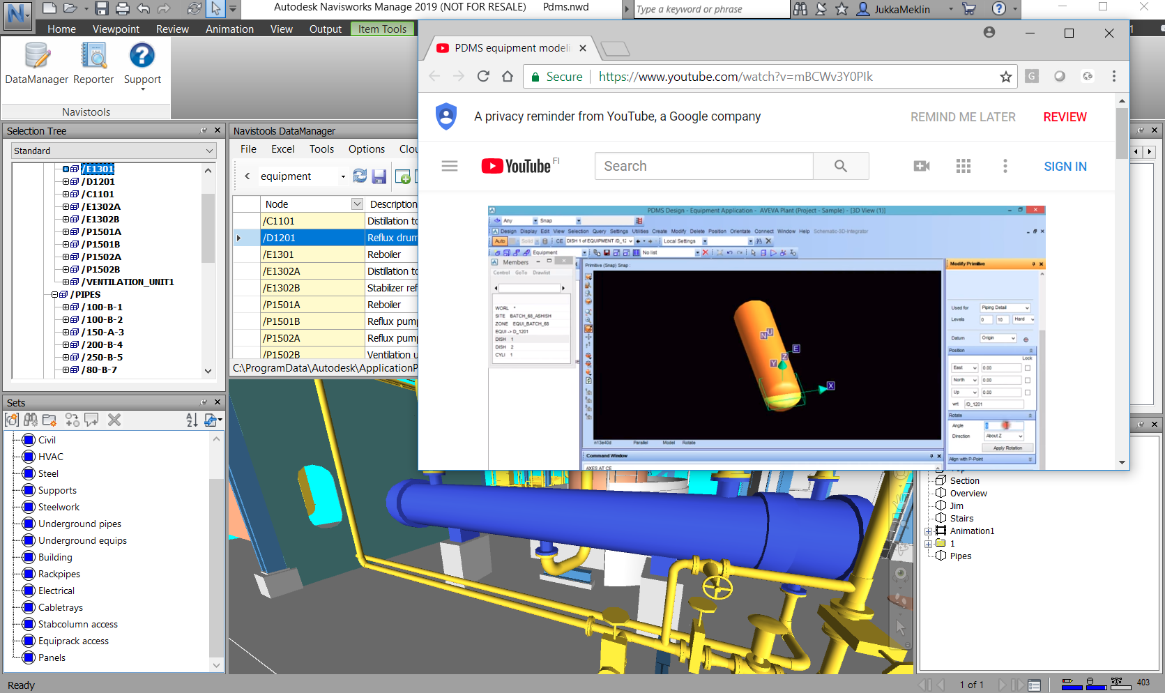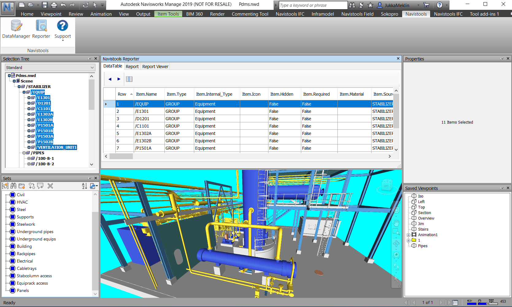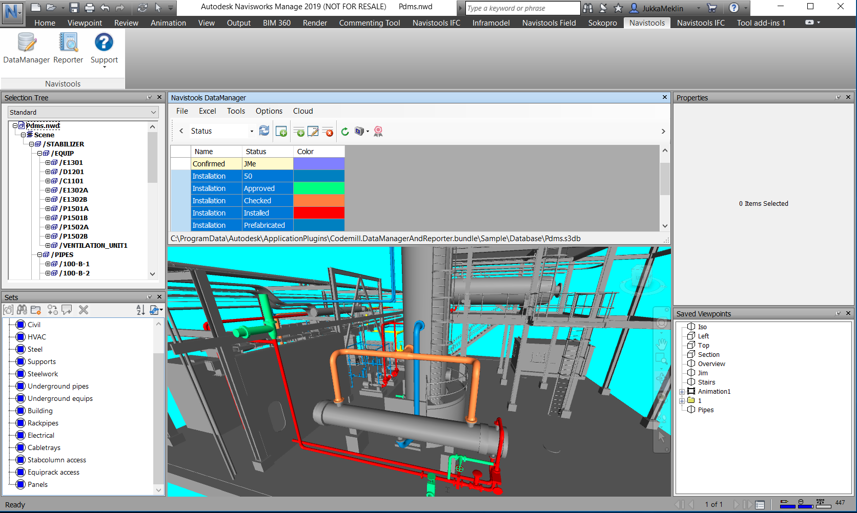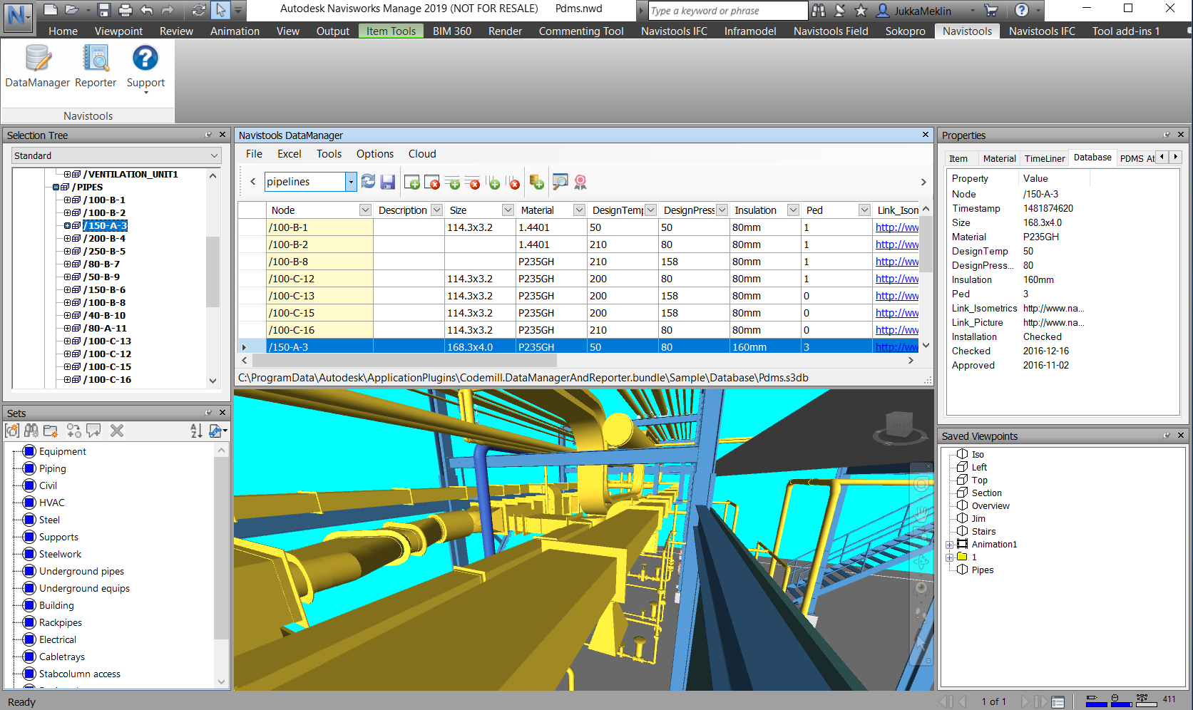 Running Navisworks with Codemill DataManager and Reporter provides the functionality to search, link, tag and report on information stored in Navisworks models and linked external databases, as well as the ability to add new construction and maintenance data captured on-site.