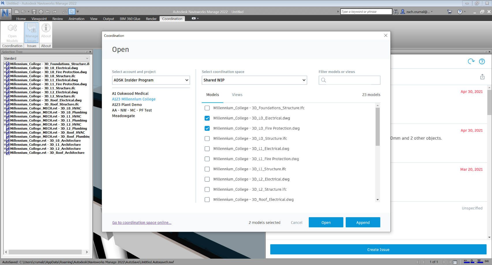 -I have no clue what the "Append models" feature does it is always greyed out and I cannot find any Autodesk help articles explaining its usage.