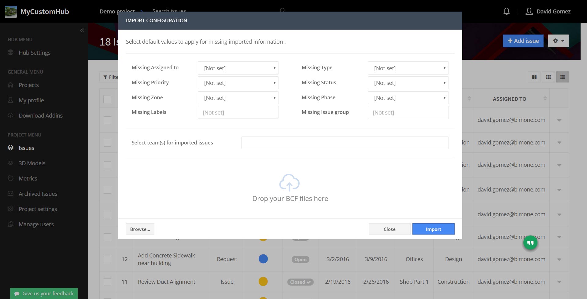 BIM Track™ est une plateforme Web de collaboration qui fournit un processus de coordination optimise à votre équipe. BIM Track™ centralise toute l'information de coordination de là de conception jusqu'à la phase de construction. Grâce à lui, les informations de cos projets de construction sont à portée de main et vous pouvez y avoir accès en tout temps et n’importe ou via votre ordinateur ou appareil mobile. BIM Track™ vous fournit des métriques précises afin de vous aider à comprendre les données et les performances de votre projet. Nous soutenons les processus OpenBIM et supportons les fichiers de type IFC (Industry Foundation Classes) et BCF (BIM Collaboration Format).