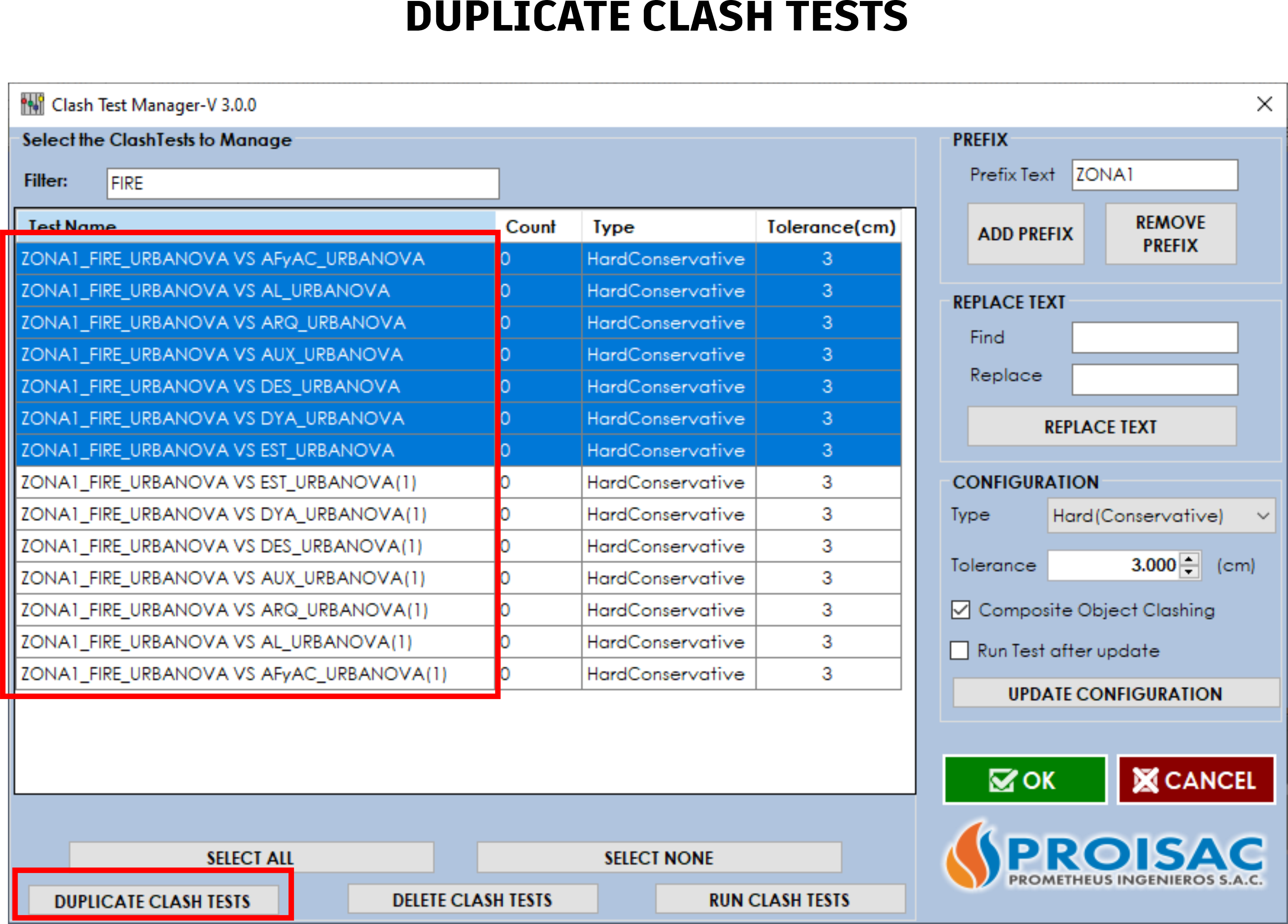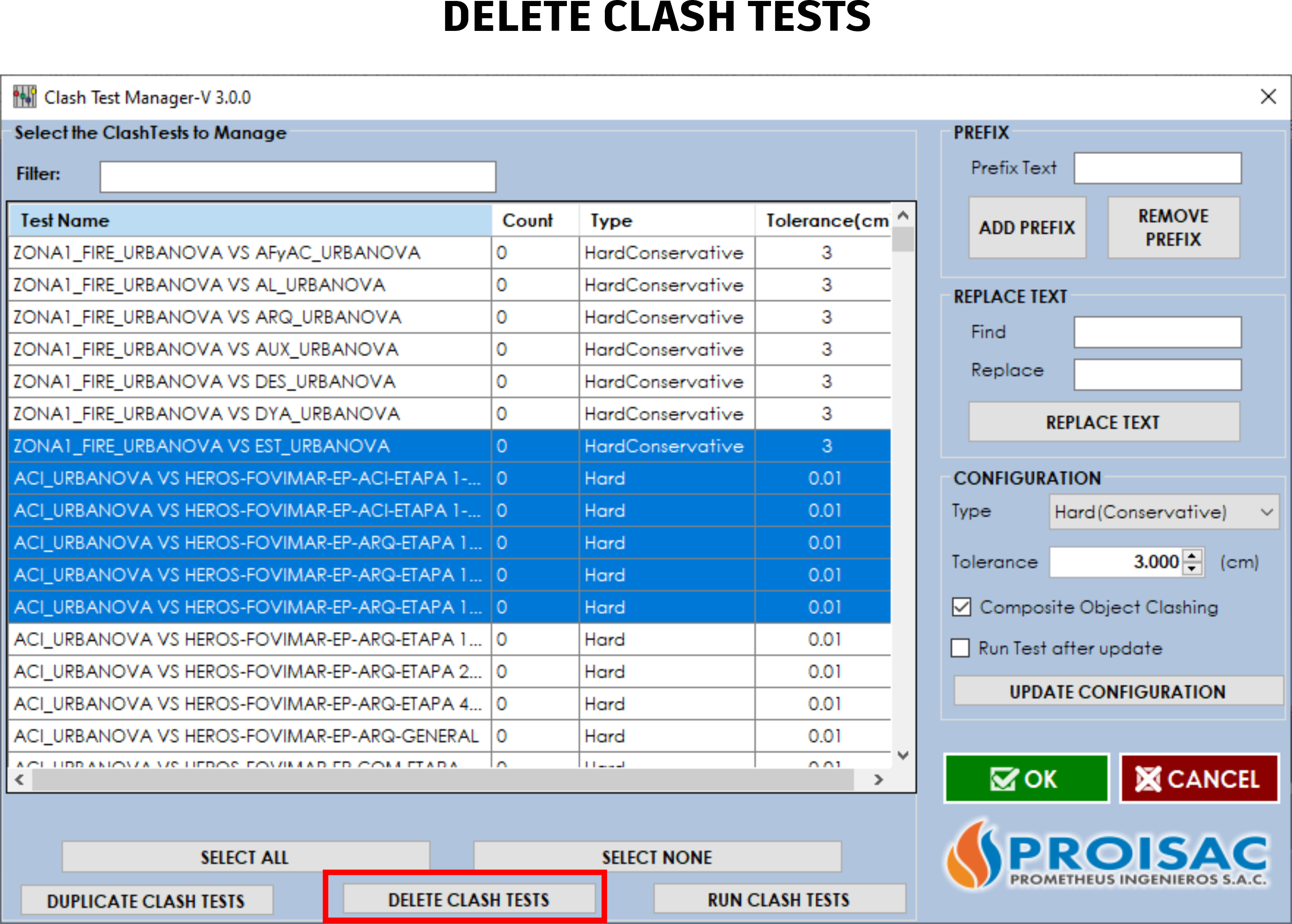 - Assign or remove a prefix to the names of the Clash Test.