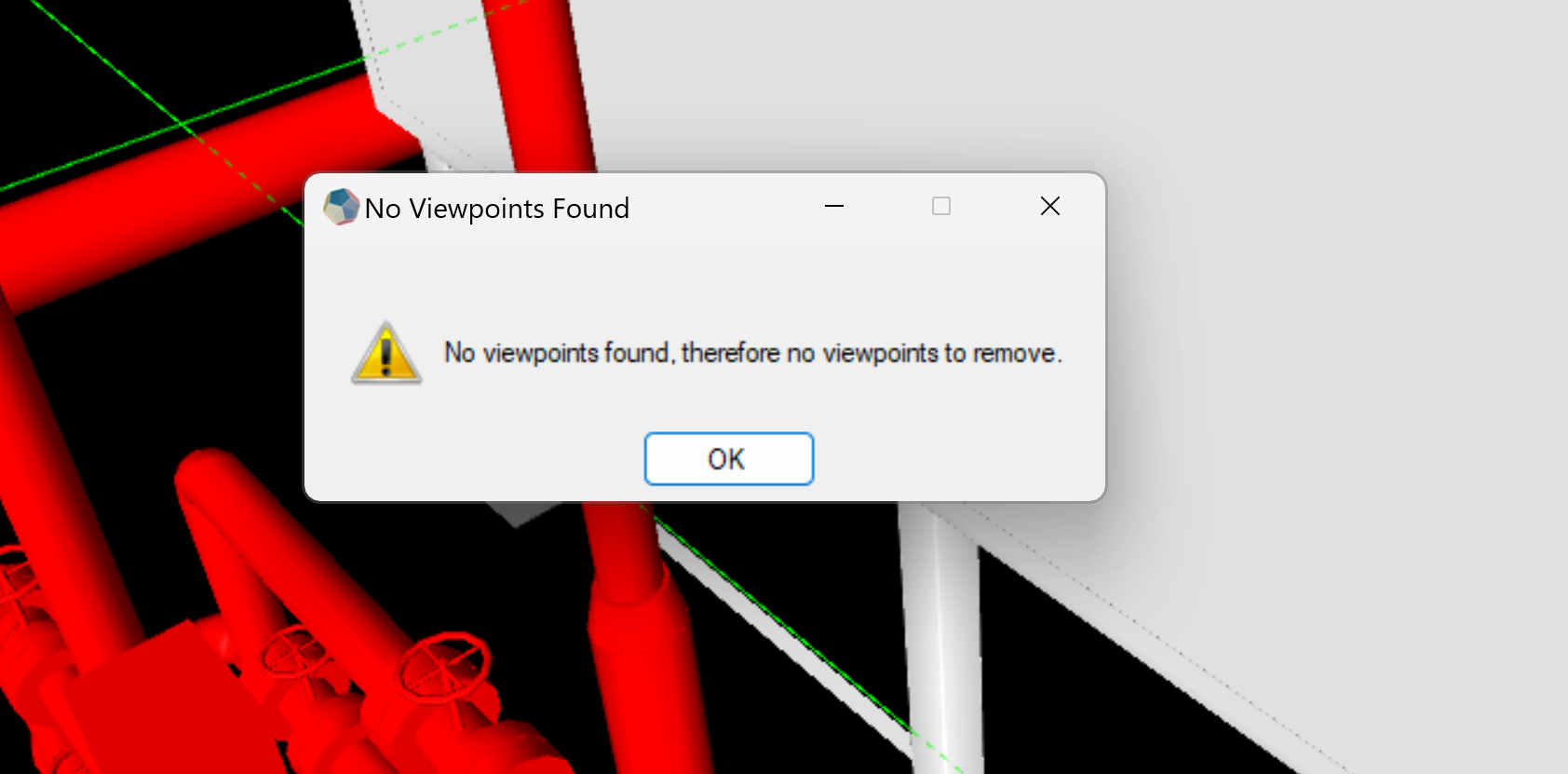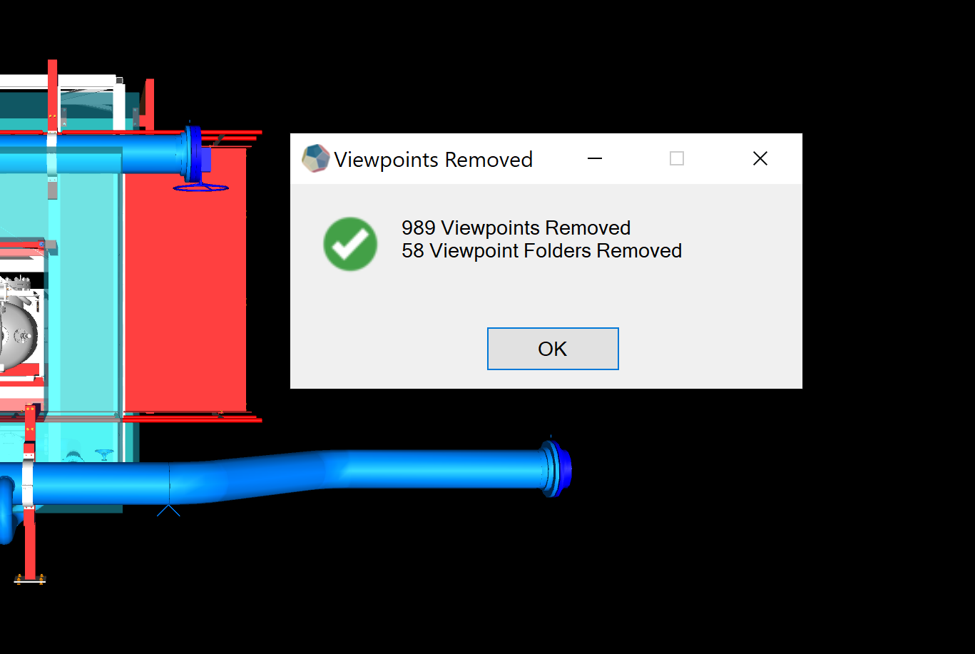 - A message box will confirm this together with a count of the number of viewpoints and viewpoint folders removed