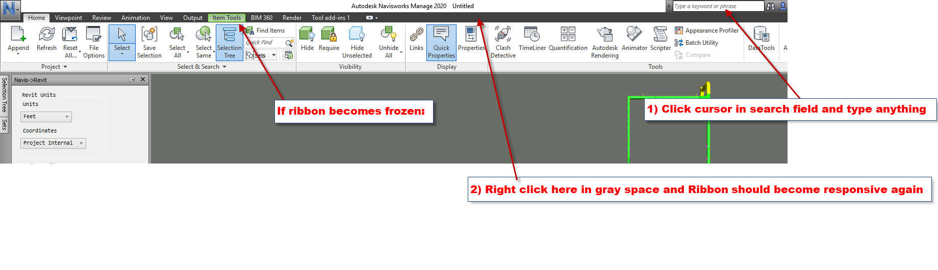 Pre-requisite: Both Revit and Navisworks need to be installed on your machine to transfer the points or geometry from Navisworks to Revit.