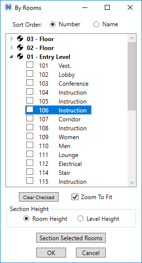 Section Box for Autodesk® Navisworks® allows you to dynamically move each of the six sectioning planes (Top, Bottom, Front, Back, Left and Right), giving you an immediate visual of your sectioning. The large sliders rapidly move the sectioning planes to quickly find the desired location, while the smaller spinners give you a more precise movement allowing you to refine the location. You can also select a point in your model to locate any of the six planes. Sectioning can also be done by Level, Grid Lines or Rooms.
