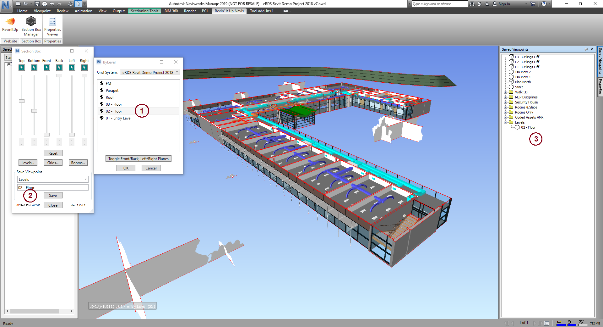 Super handy! Section by levels and grids - makes a great meeting tool too. Save as viewpoint - nice.