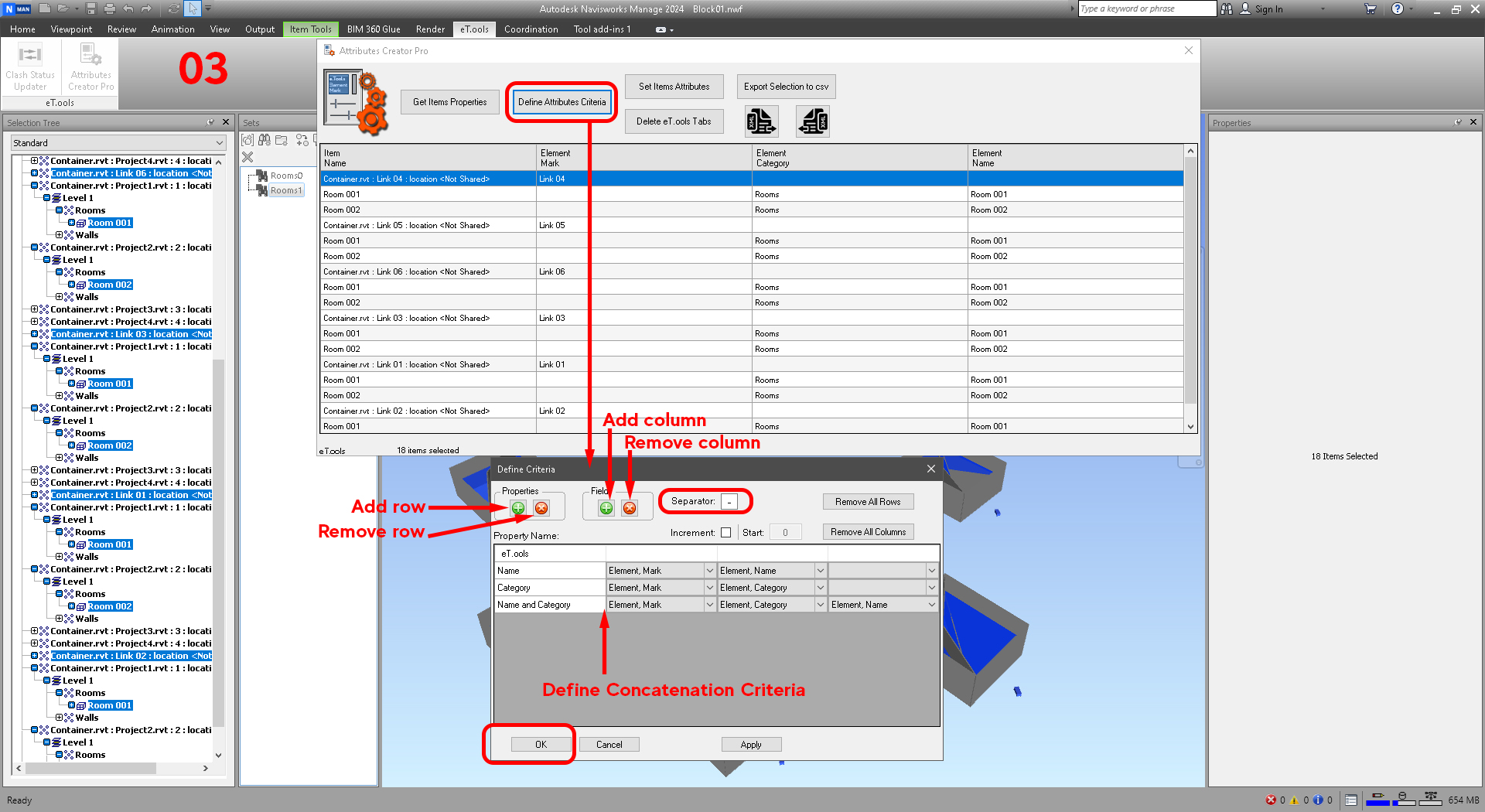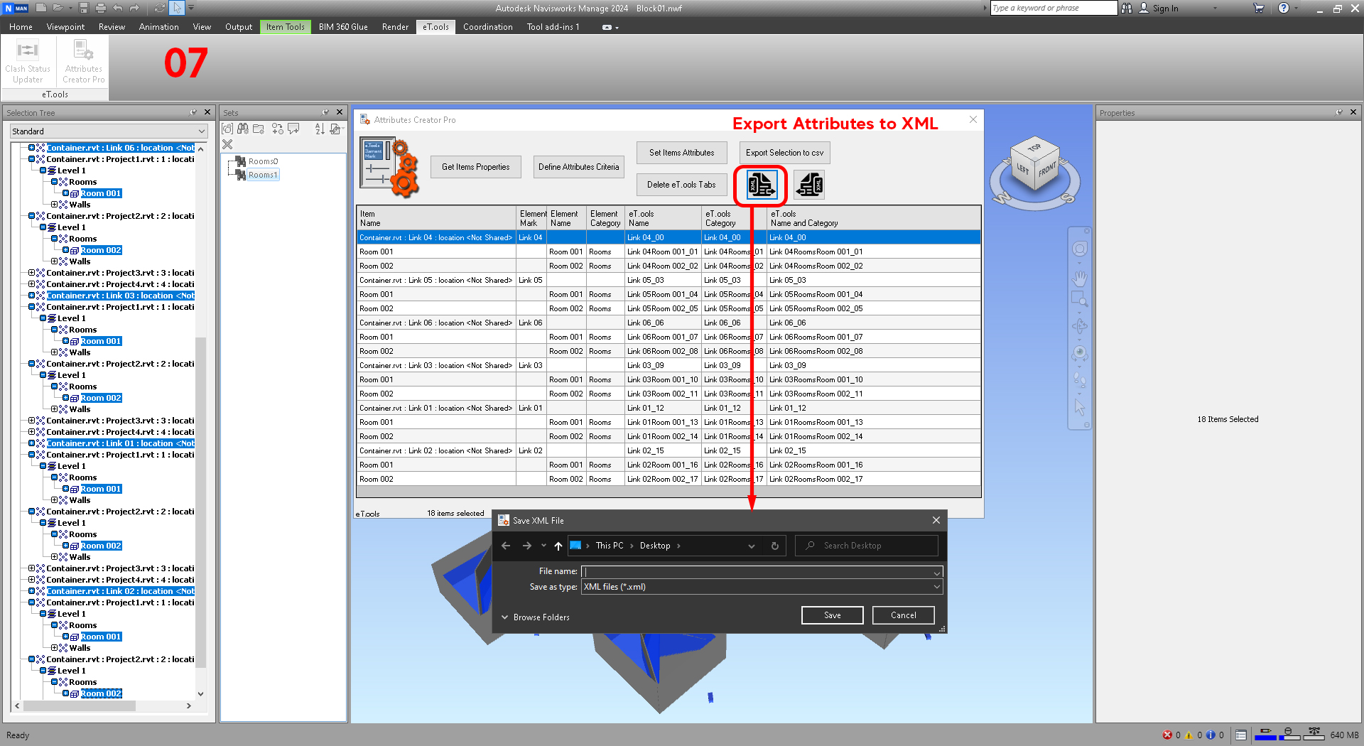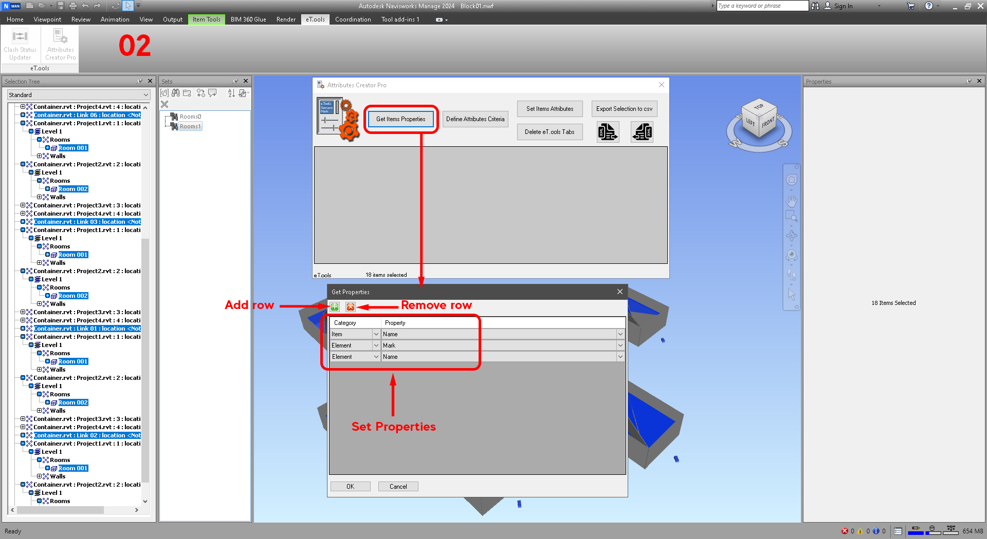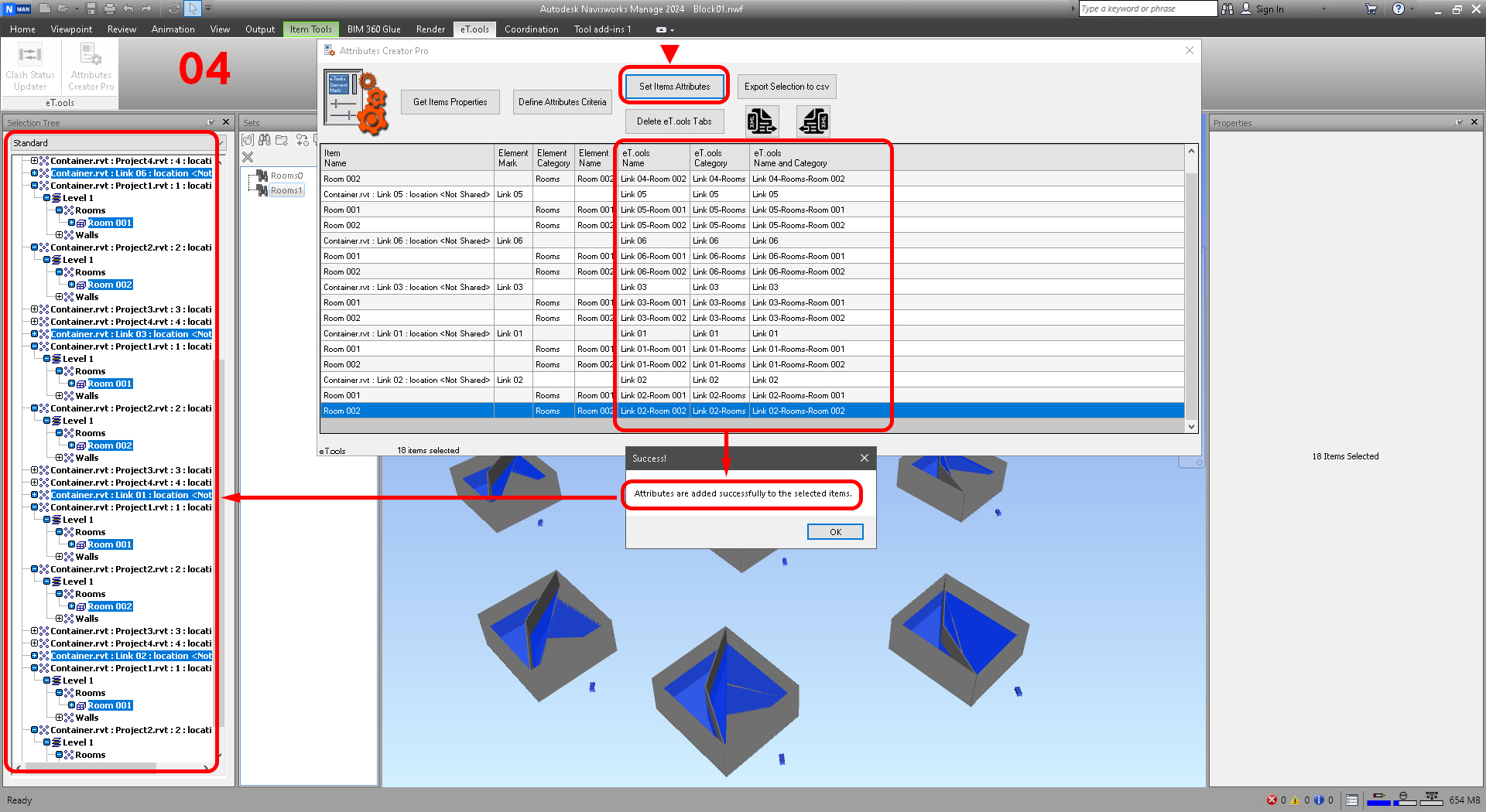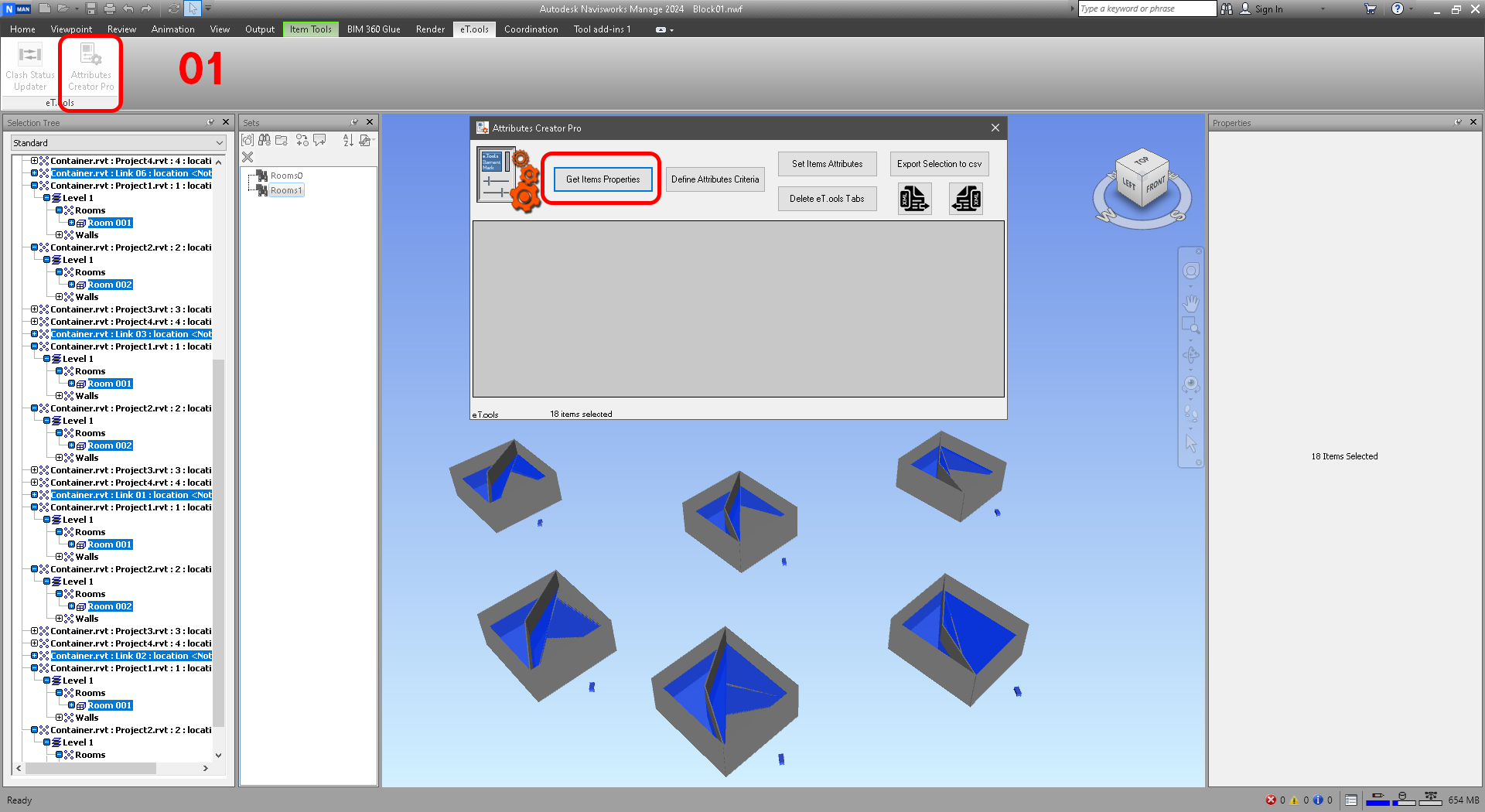 - Create the category eT.ools, properties, and values by pressing the Set Items Attributes button.