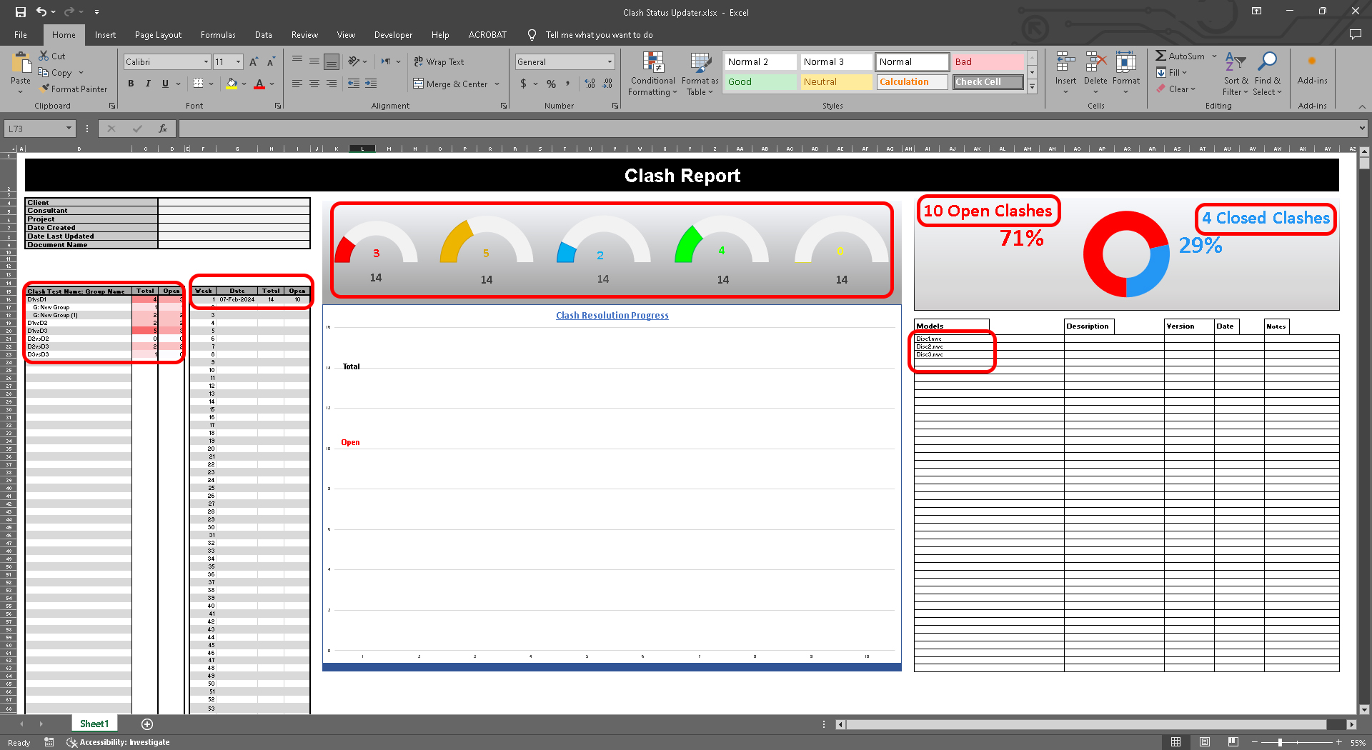 - Lead Appointed Party BIM Manager updates the NWF Clash Detective with the latest clash checks by using the Clash Status Updater tool.