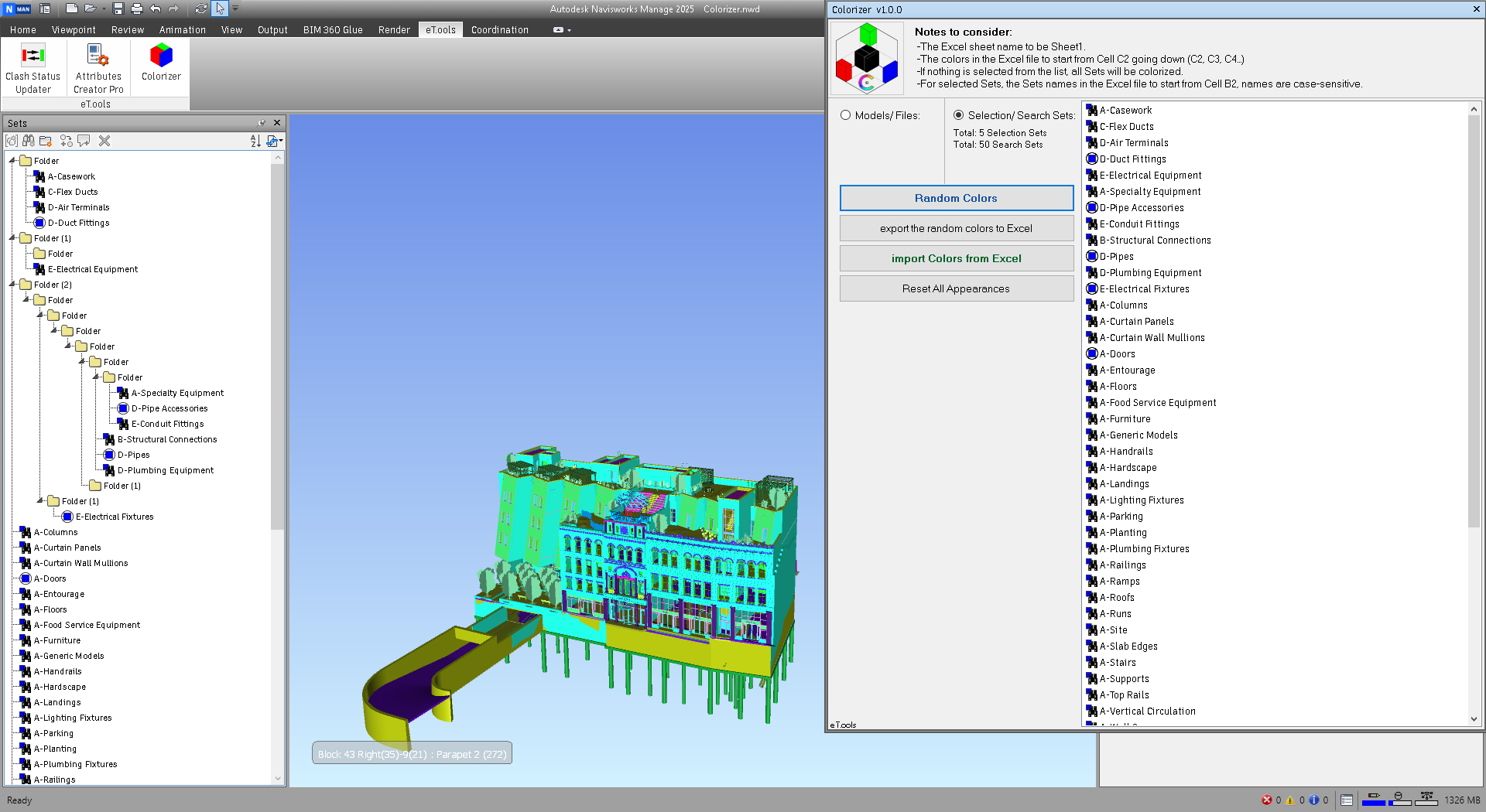 3-Colorizer by eT.ools is an excellent tool that will give users the capability to colorize models, search and select sets either randomly or by imported Excel sheet; Users can export the random colors to an Excel file too.