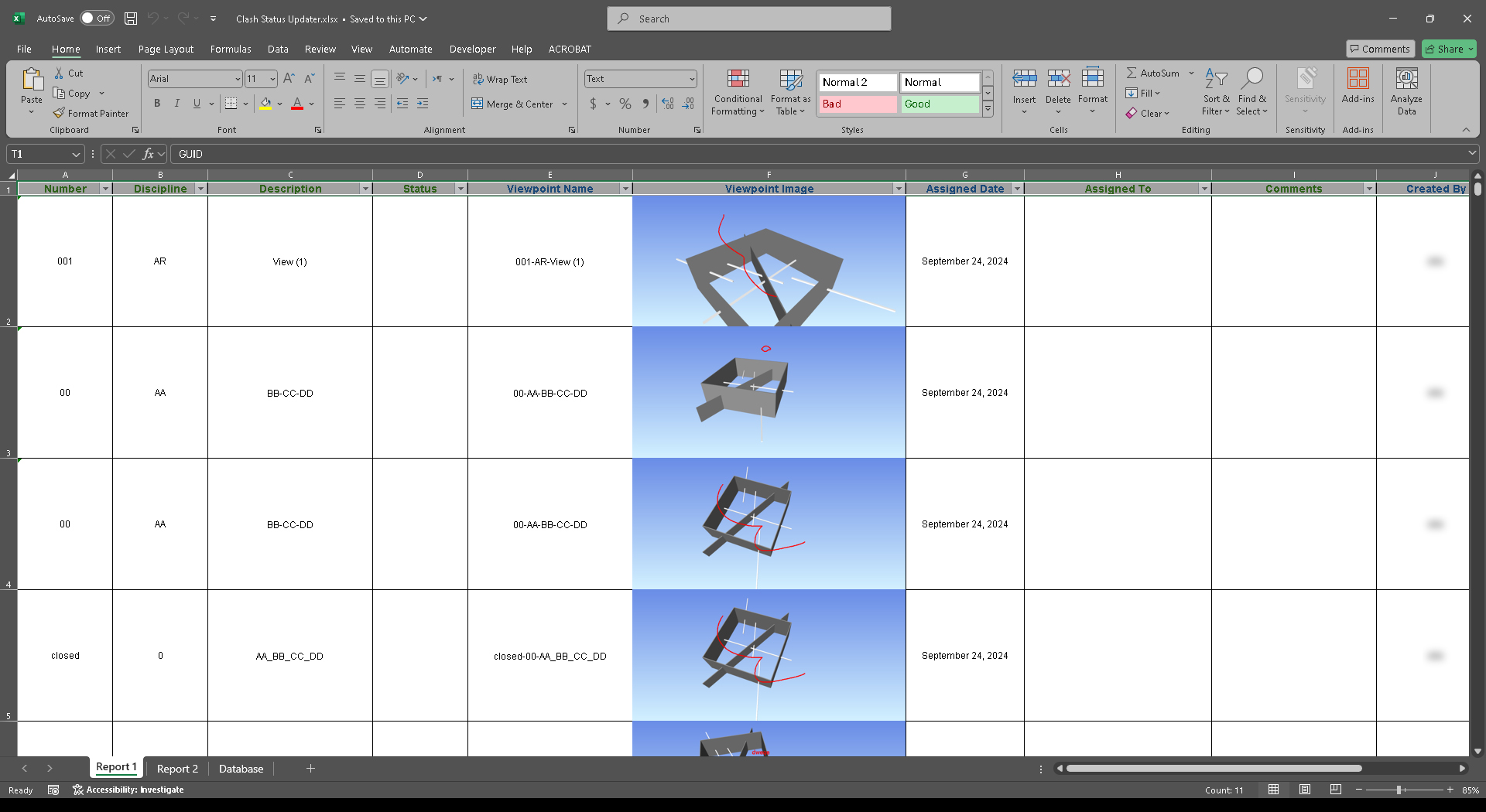- Create connectivity between an Excel file and Saved Viewpoints.