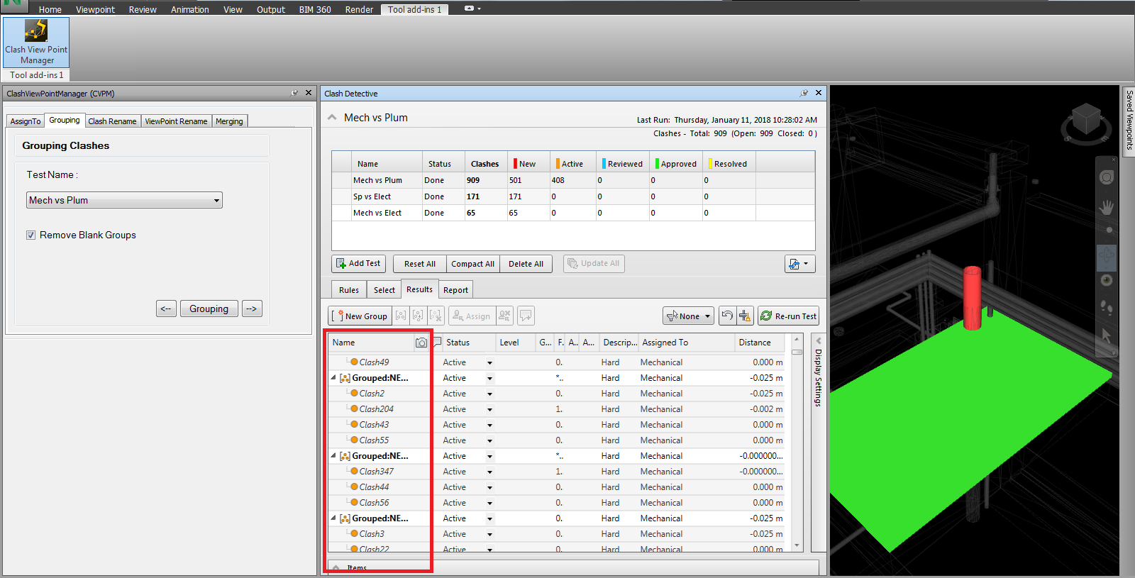 2) Grouping: It is a feature that facilitates the grouping of elements and associated clashes for a better view and understanding, on the basis of common elements.