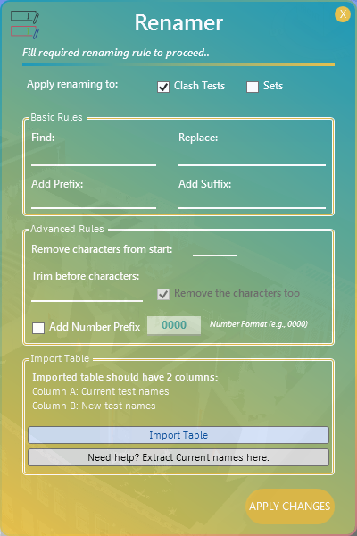 - Renamer: Batch renames clash tests and sets based on predefined rules.