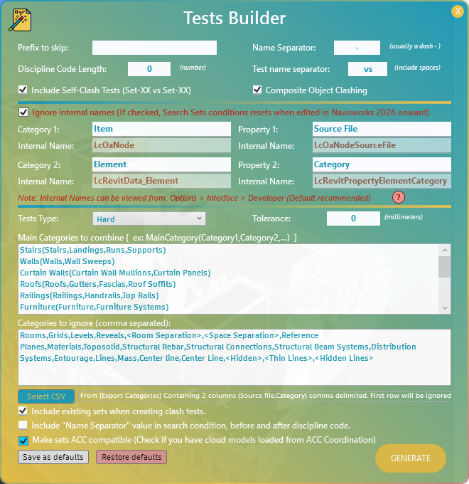 - Tests Builder: Quickly generates clash tests and sets from element categories.