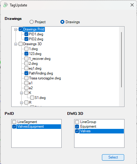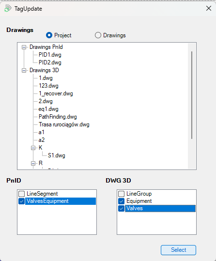 Just select the drawings you'd like to update - whether they are P&ID or 3D drawings. TagUpdate will diligently update tags in all chosen drawings and subsequently display the number of tags updated in each drawing.