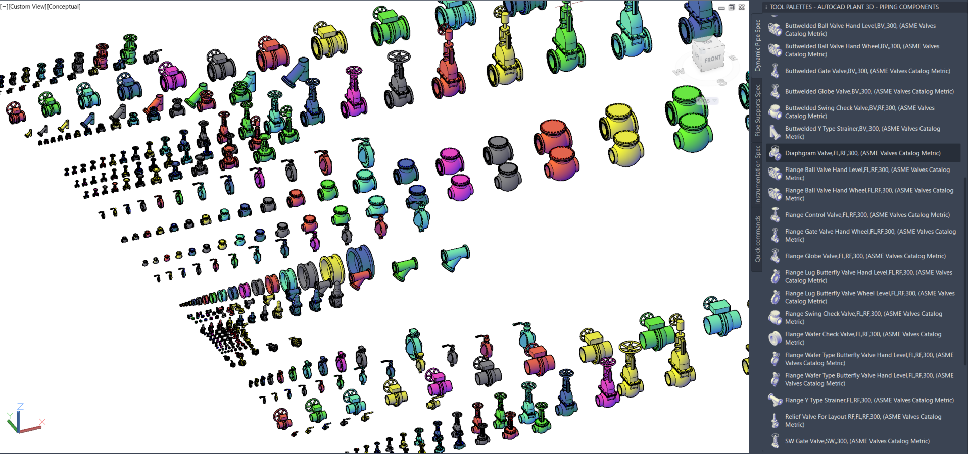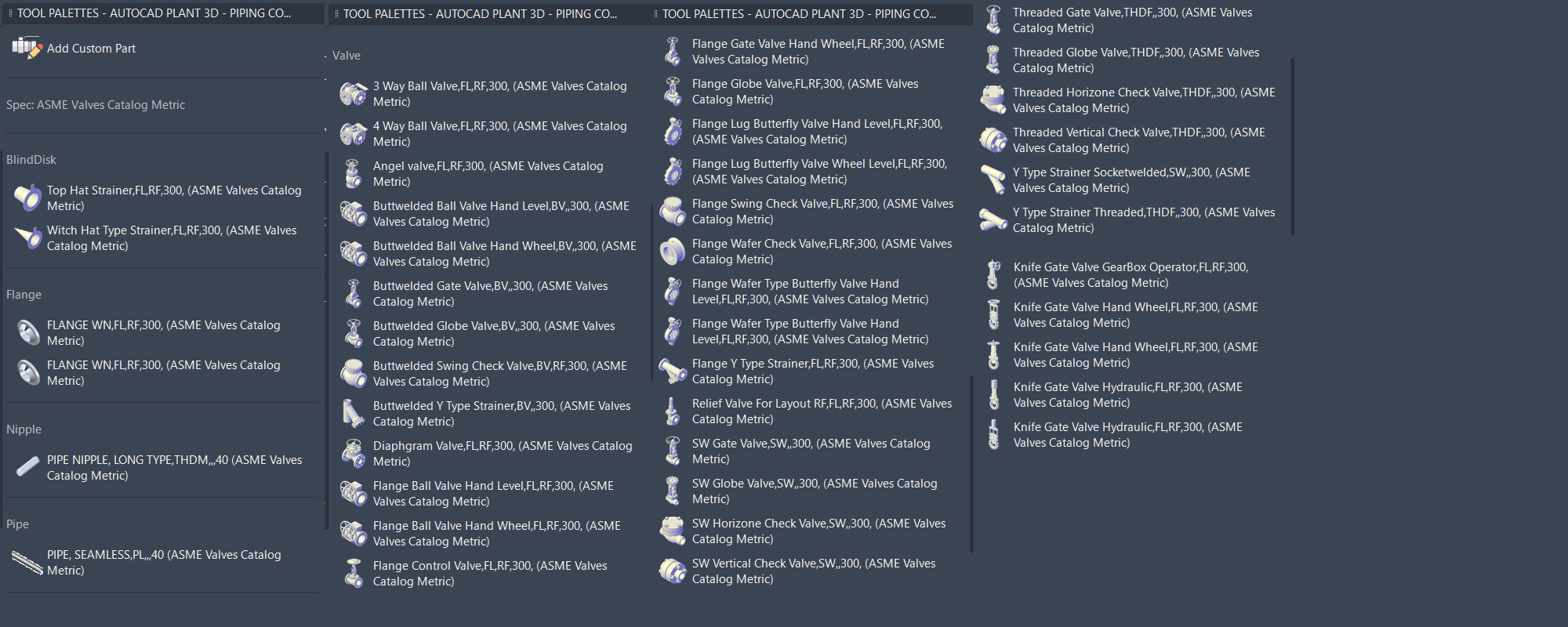 - All Valves are parametric Python parts, so you can adapt to your standard if needed.
