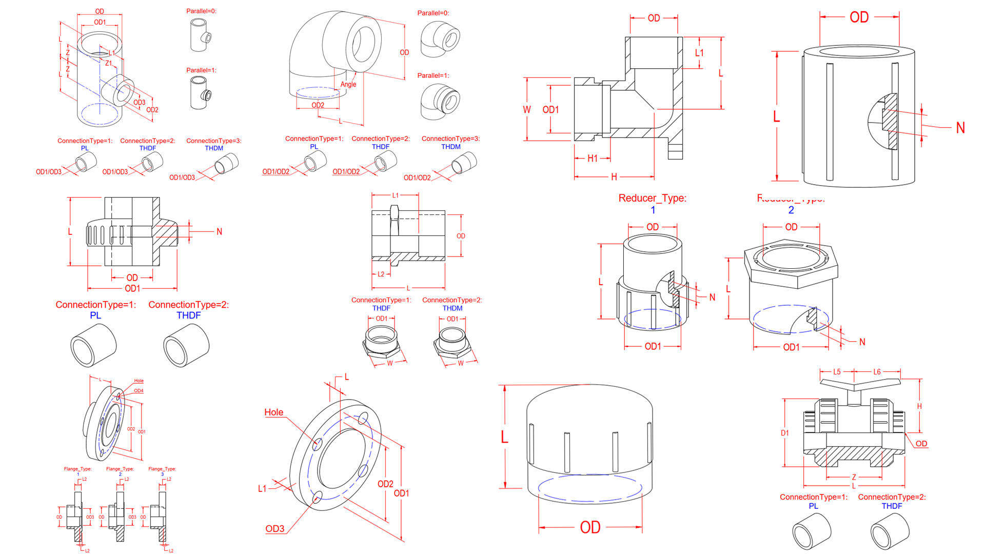 - All Valves are parametric Python parts, so you can adapt to your standard if needed.
