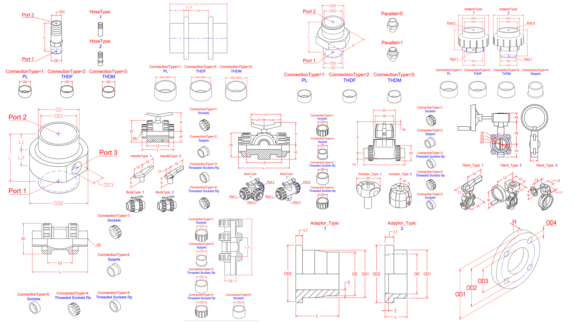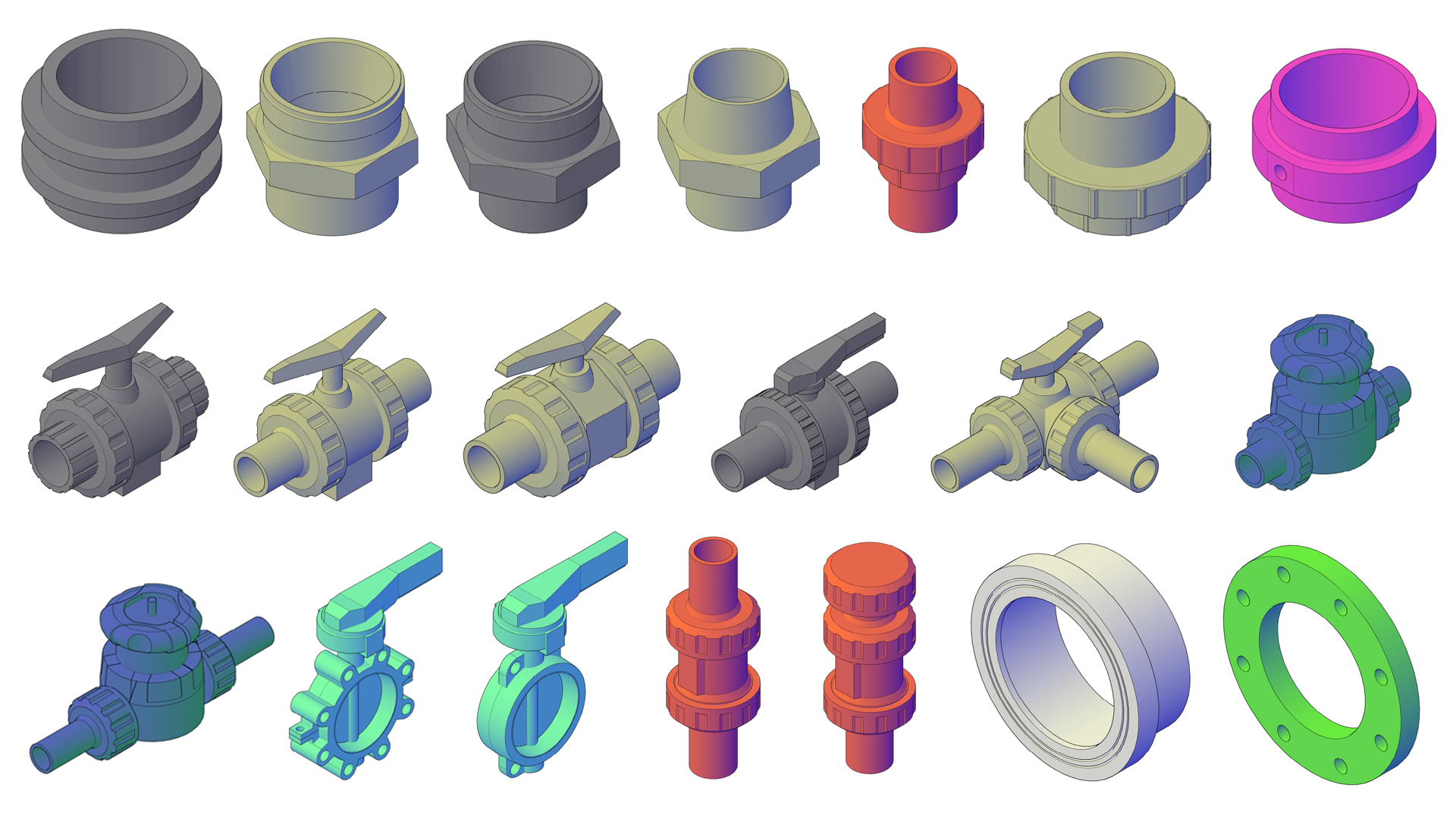 - All Valves are parametric Python parts so you can adapt to your standard if needed.