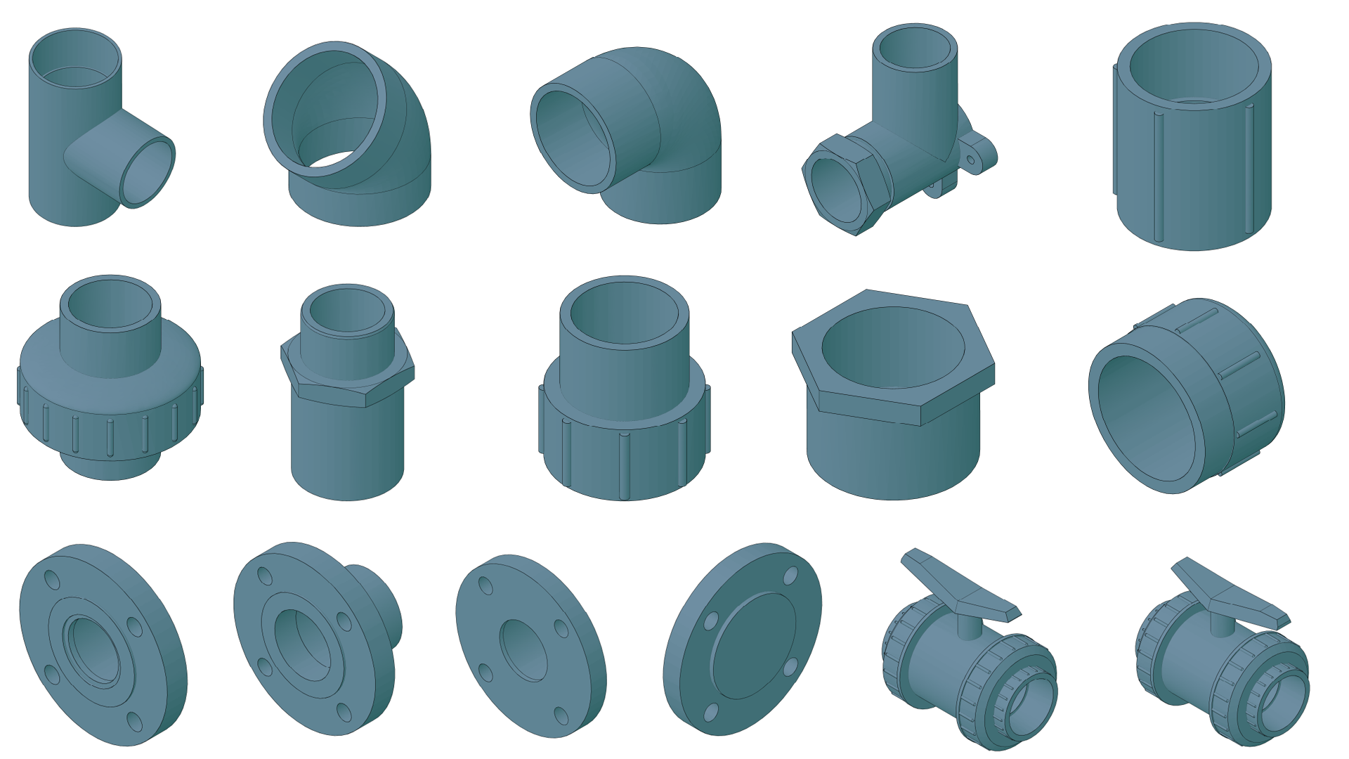 - All Valves are parametric Python parts, so you can adapt to your standard if needed.