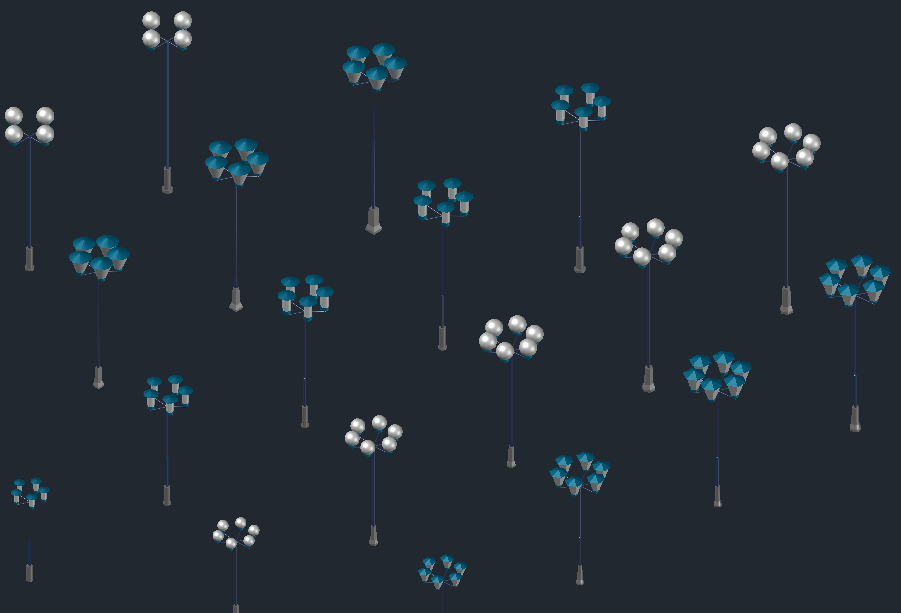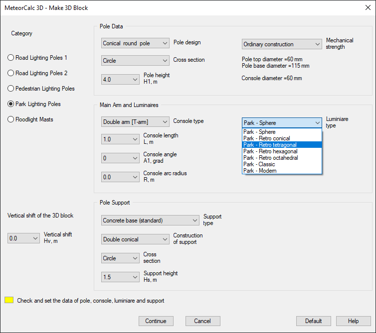 The current version of MeteorCalc 3D supports the creation of 3D blocks only for street lighting fixtures with poles and foundations.