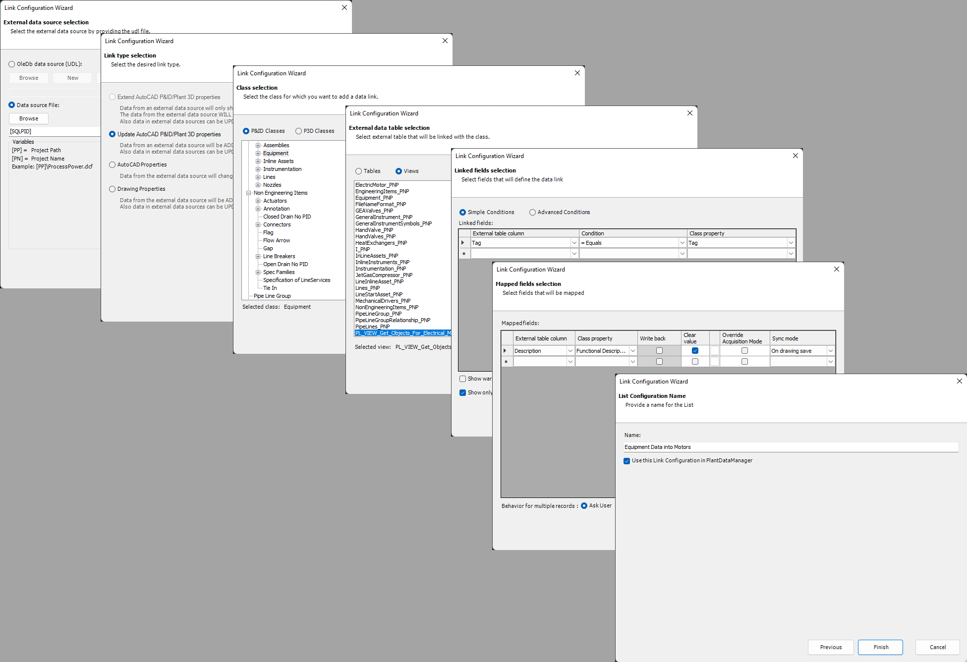 In one example of the power of PlantLink, data can be driven into the Autodesk® AutoCAD® P&IDs or plant models by linking to one or many external databases and keying into one or more field values.