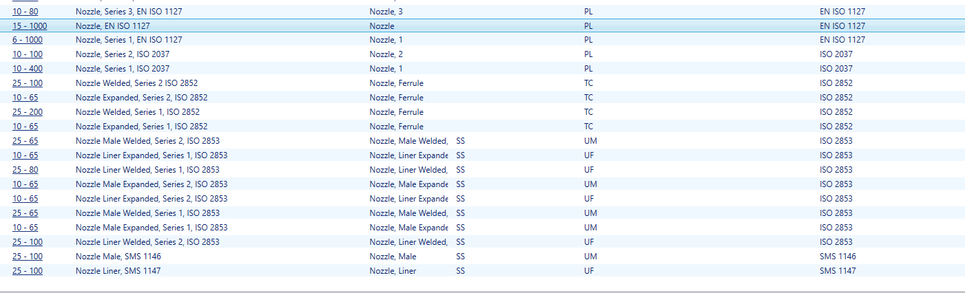 1. Tubes nozzle as per BS 4825, A270, EN 10357, EN 10217, ASME B36.10 & 36.19, EN 10220, EN 10255, ISO 1127