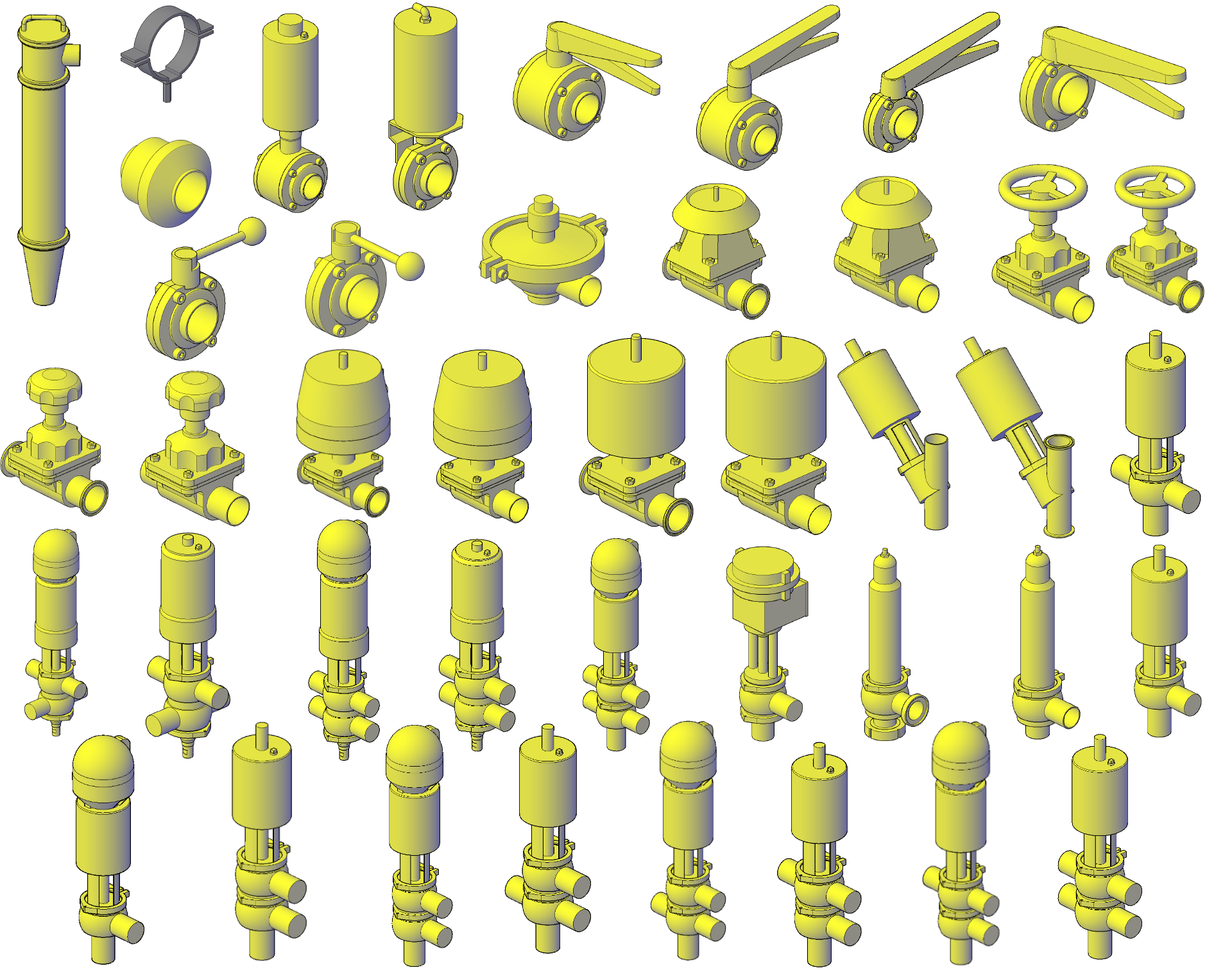 Highly customizable components include: Clamps, Coupling, Fittings, and Valves are Python custom script components. They are suitable for Pharmaceutical, Food and Beverage and Dairy projects in Europe and Worldwide.