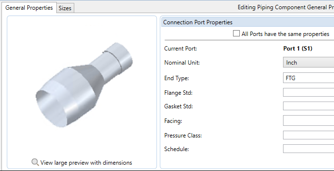 Smaller diameter pipes such as 1” are not available in this plant 3D catalogue. In this plumbing wholesale catalog (https://muellerstreamline.com/?wpdmdl=229) there are many more fittings, but unfortunately no dimensions.