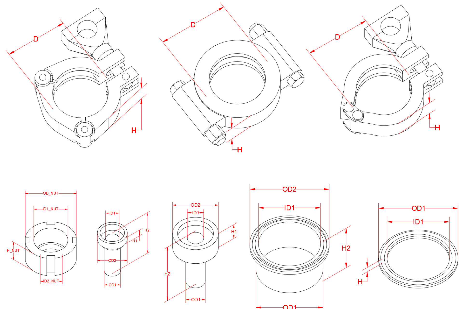 This catalog includes the 3 most common types of clamps: 2-segments, 3-segments, and high-pressure clamp and coupling. It comes with the Ferrule and gaskets, which automatically connect with the clamps. Isometric symbols for all are well constructed and displayed.