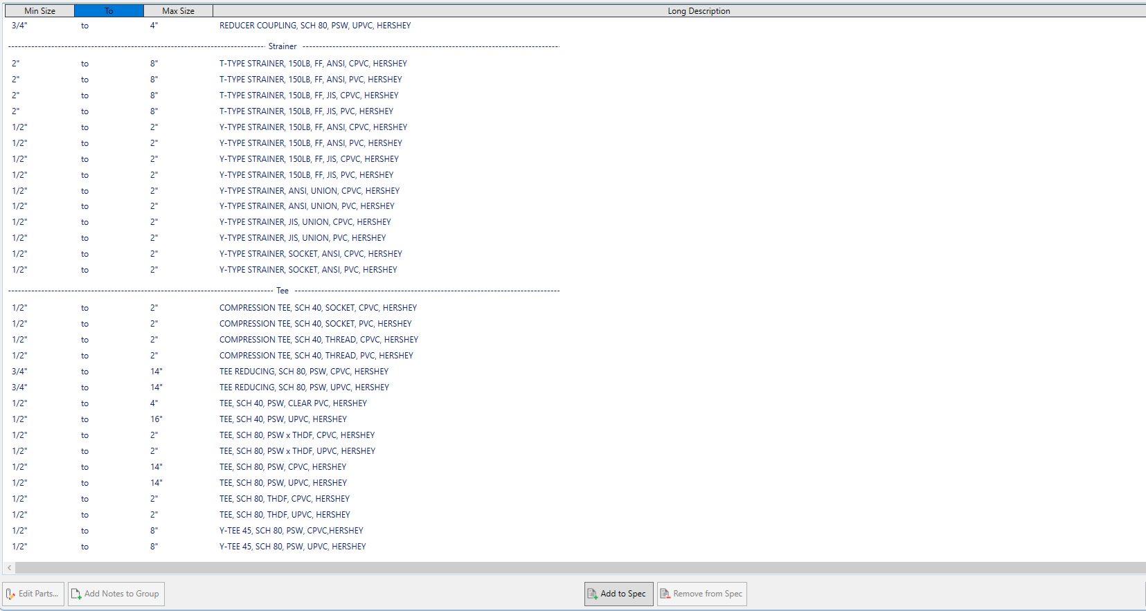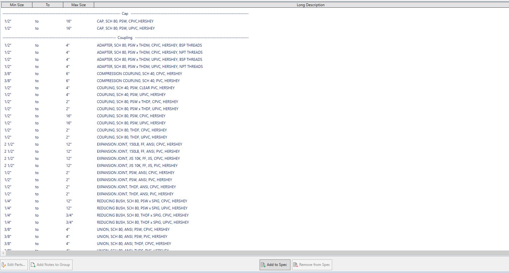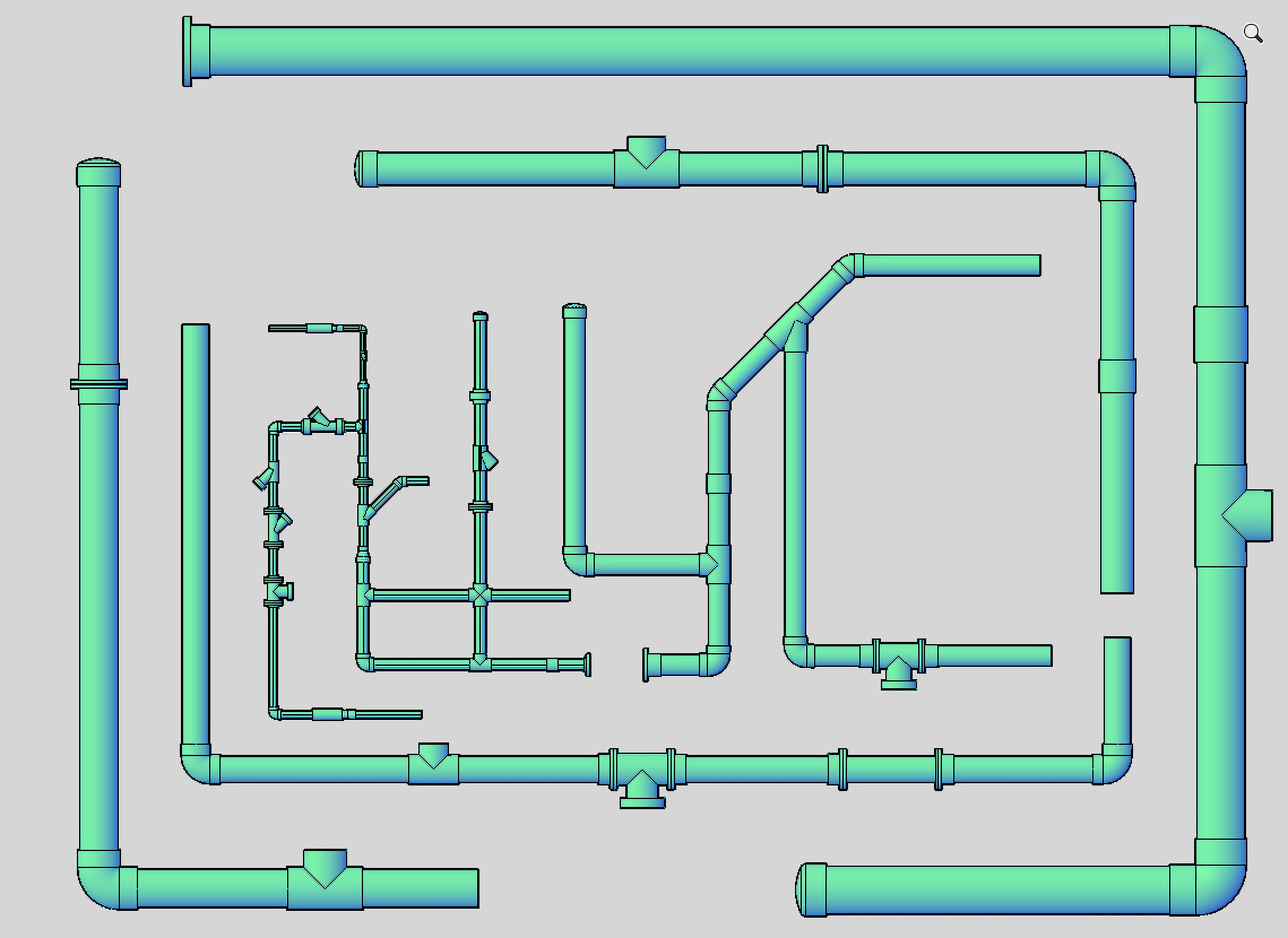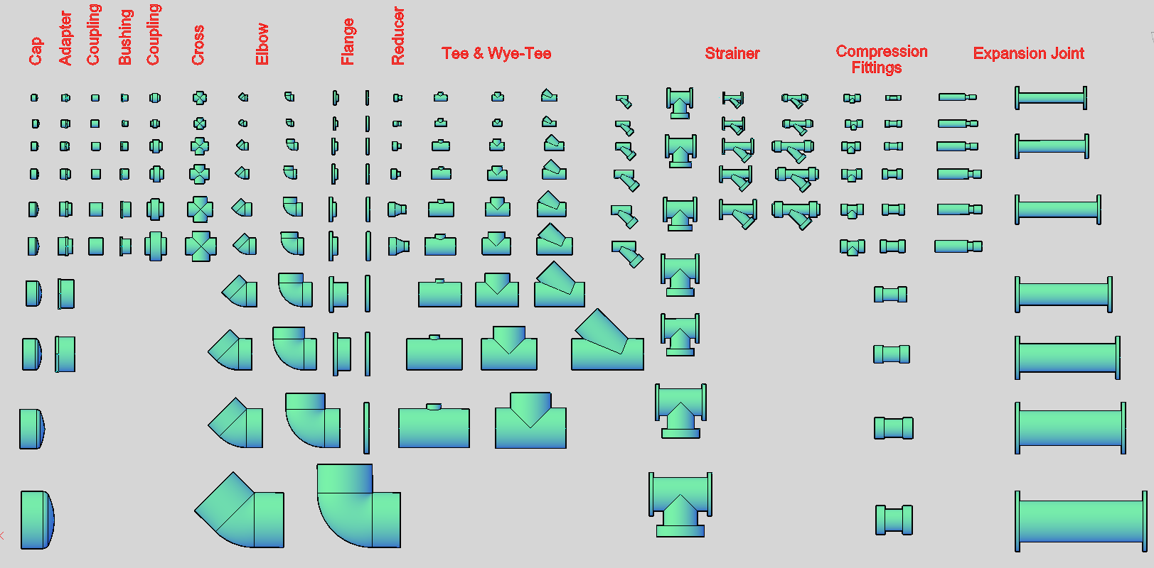 - All Pipe, Fittings, and VP Accessories components are parametric primitives.