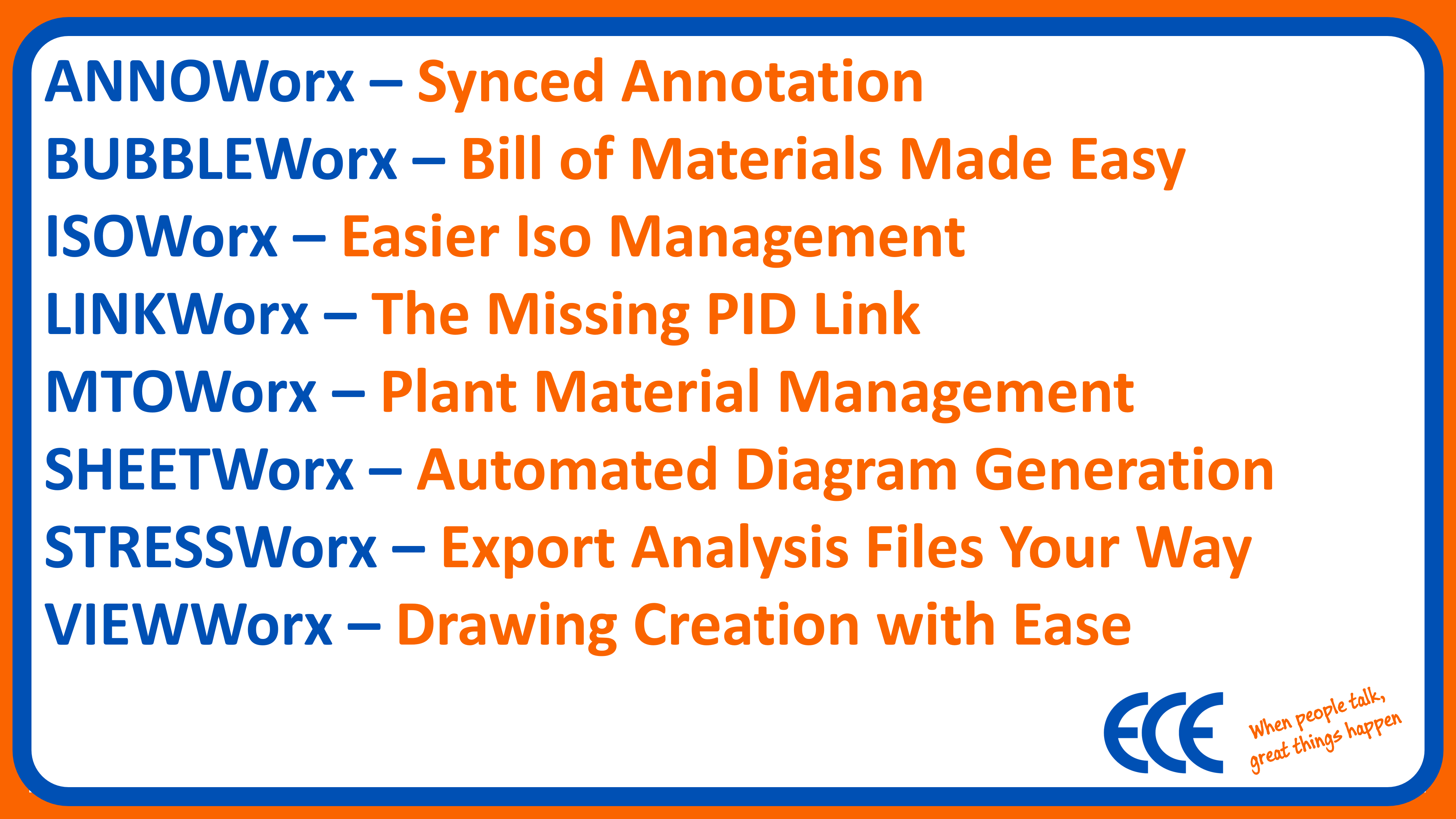 I have been a CADWorx user for almost two decades. ECE's Plugins are easily the best supplemental software plugins available for CADWorx. ECE has identified gaps in the drawing creation workflow and produced these plugins to reliably and accurately fill those gaps. They continue to impress with terrific customer service, innovation, and responsiveness. I would recommend this software to any CADWorx user.