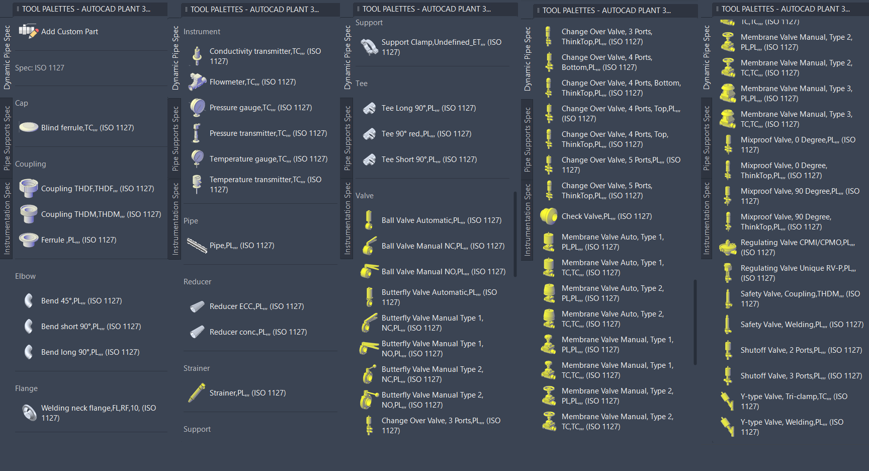 This catalog includes all common fittings, instruments and valves used in Food and Beverage, Dairy industry with ISO 1127 standards. Highly customization components include: Clamps, Coupling, Fittings, and Valves are Python custom script components. They are suitable for FMCG, Dairy projects in Europe and Worldwide.
